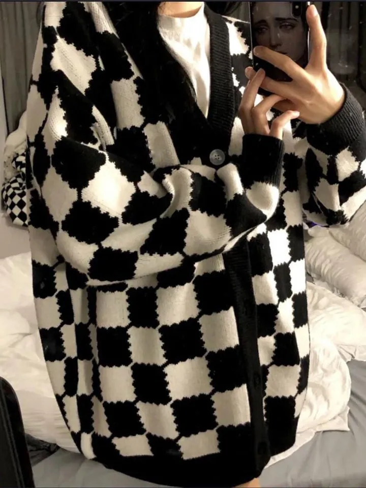 Black & White Plaid Oversized Sweater