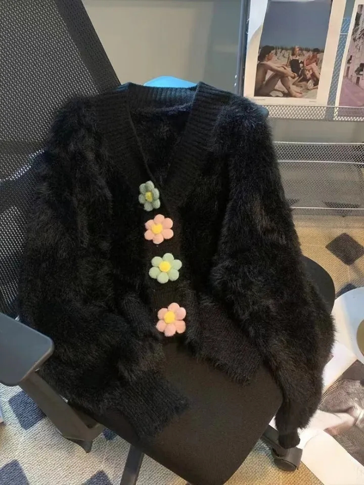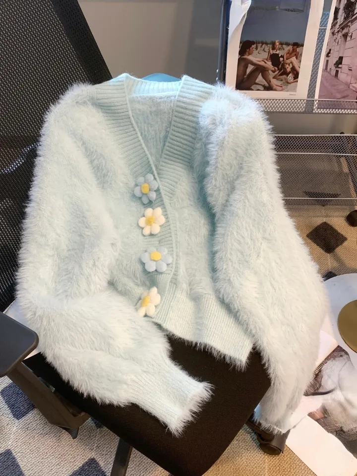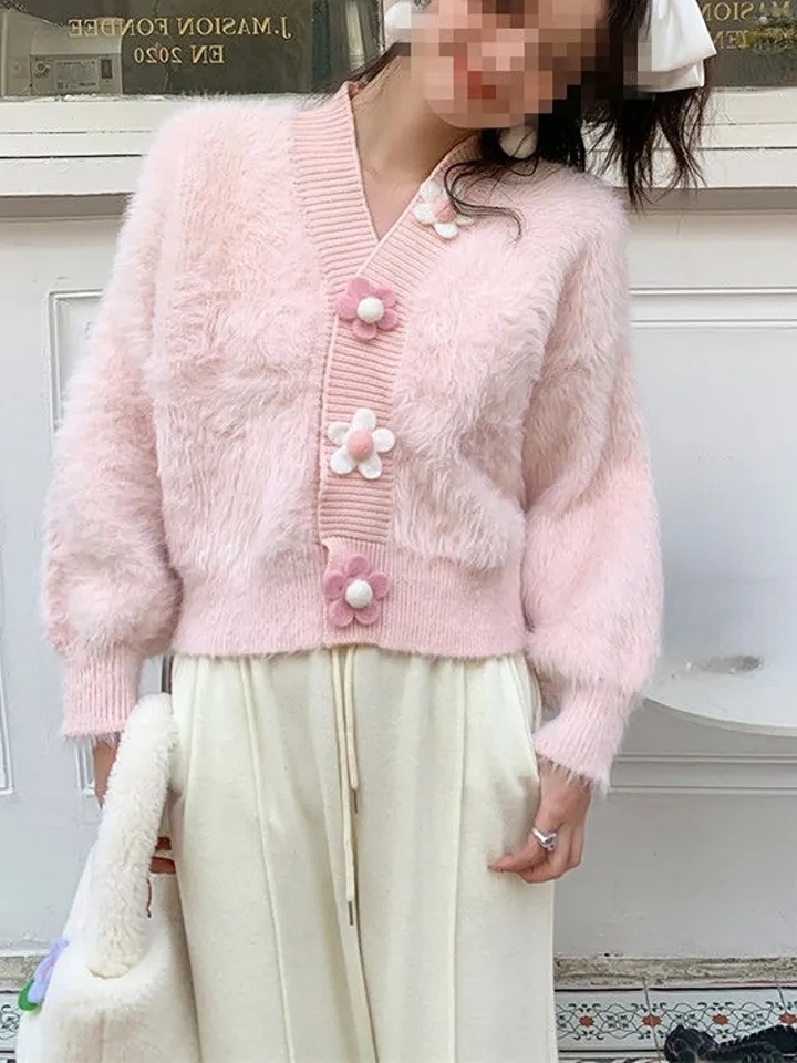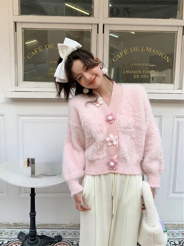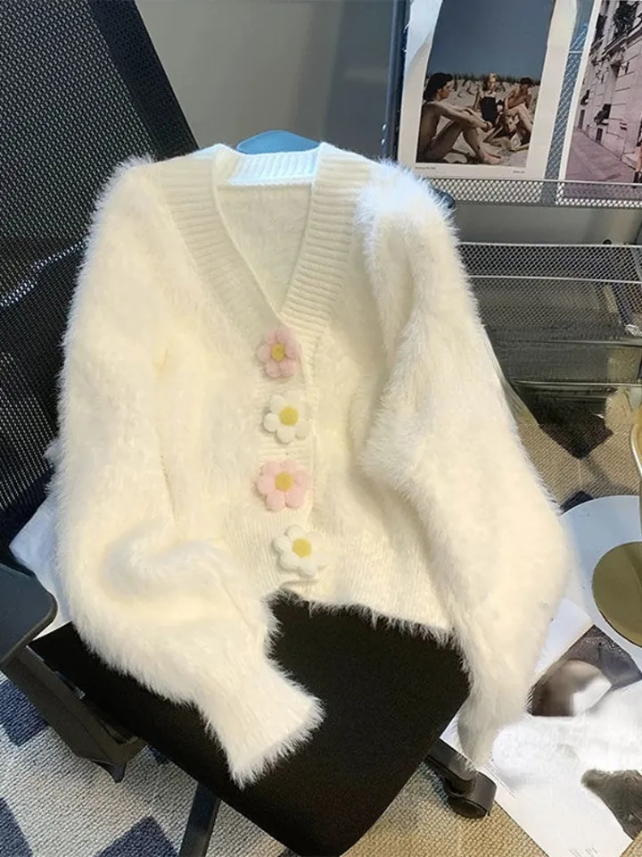 Cute Sweet Cherry Embroidery V Neck Knit Vest Long Sleeve Cardigan Crop Top Sweater Sweatshirt Pullover Jumper E-Girl Kawaii Korean Japanese Harajuku