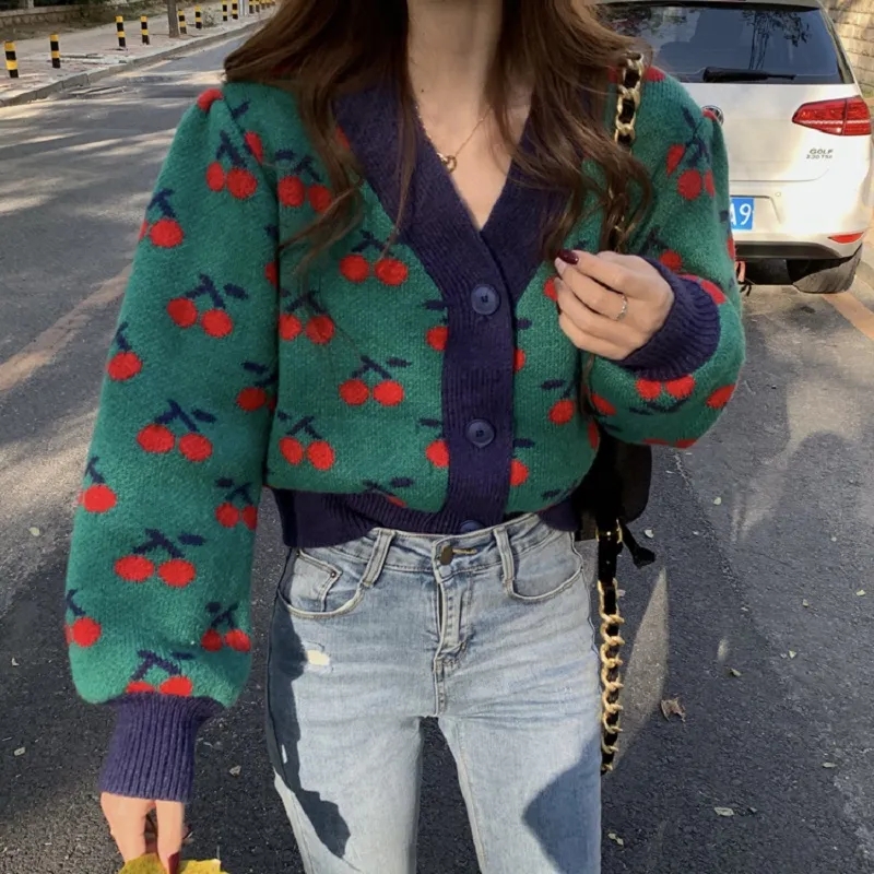 Cherry Print Soft Knit Cardigan