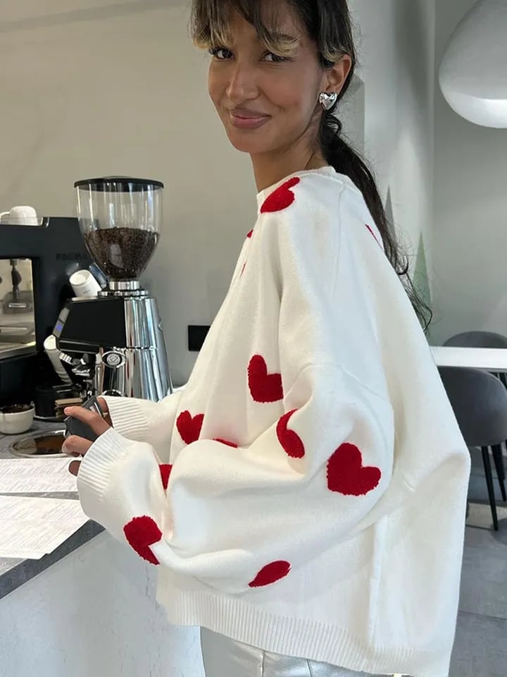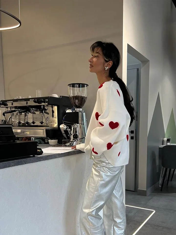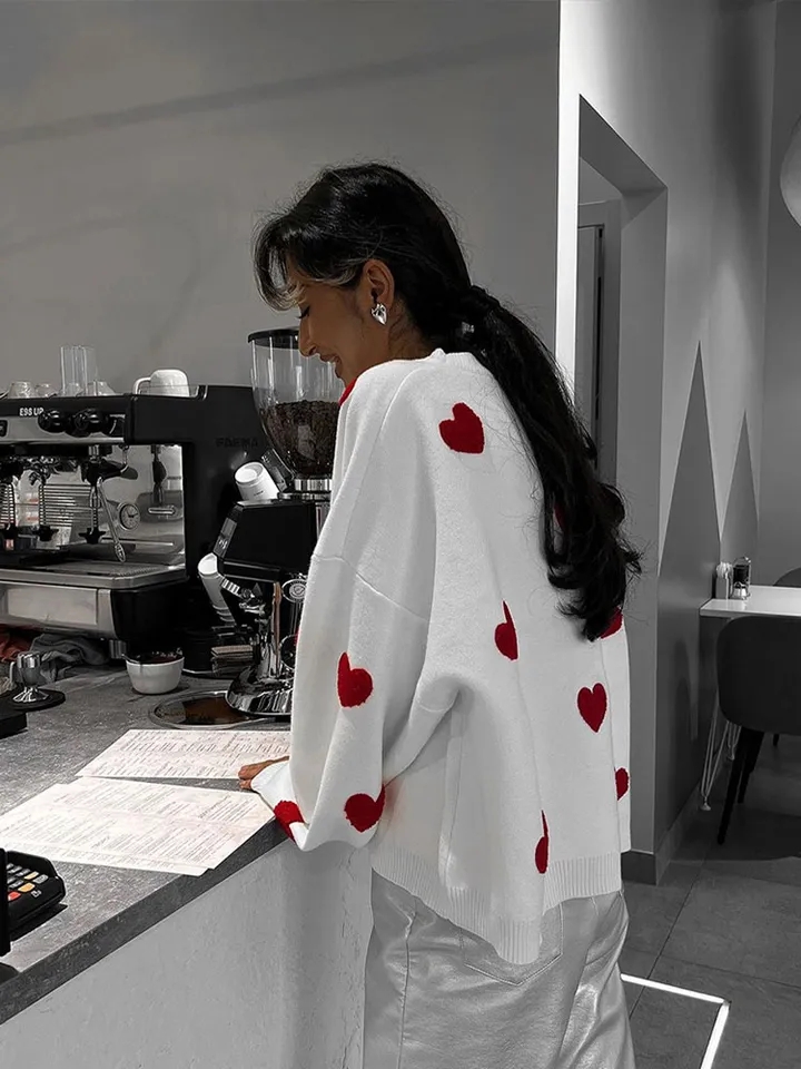 Black Letter Embroidery V Neck Long Sleeve Sweater