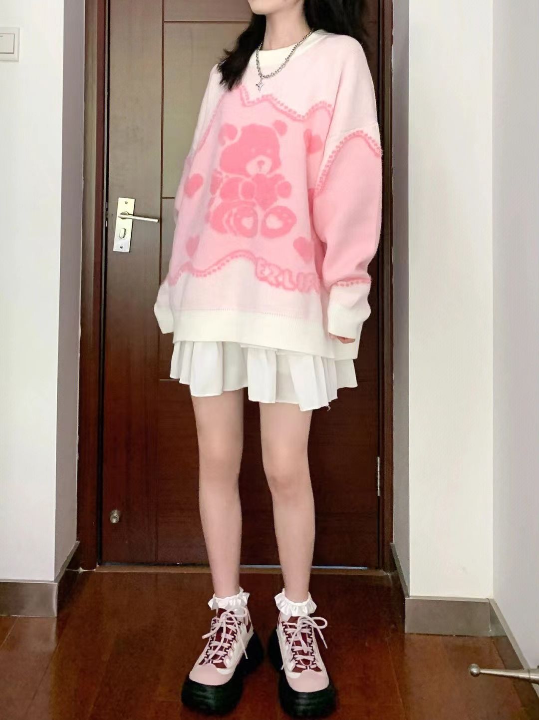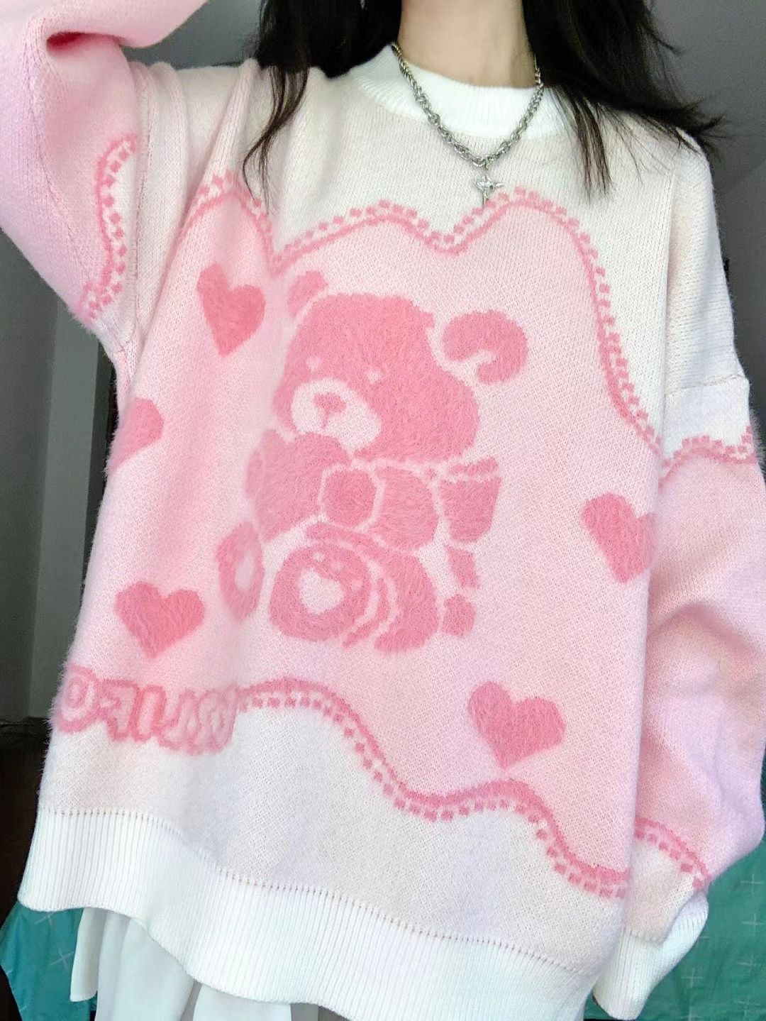 Pink Teddy Bear Print Sweater