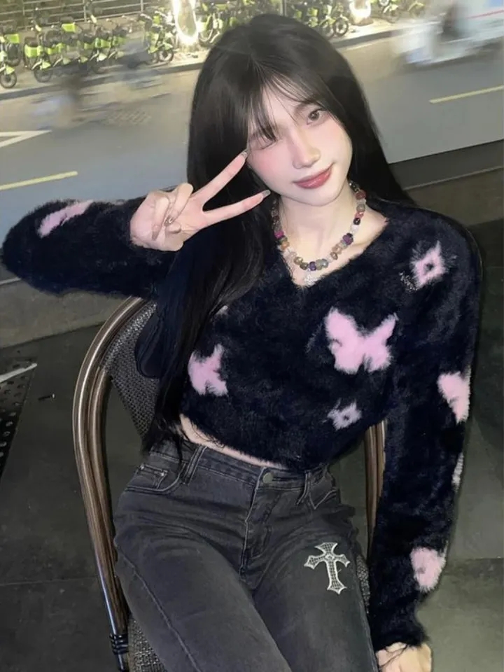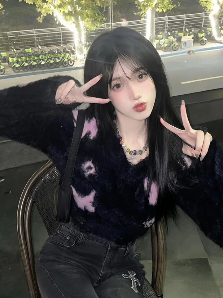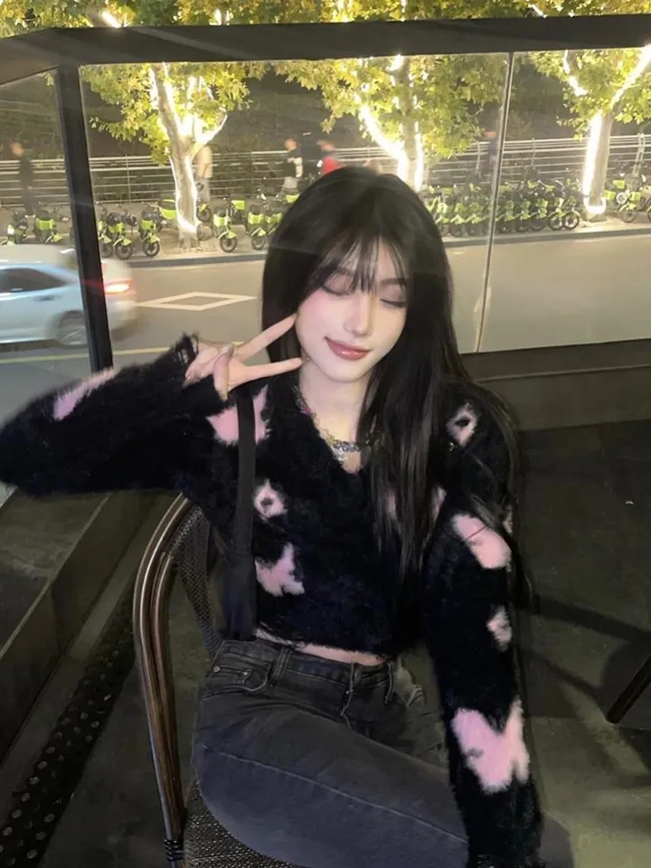 Cute Sweet 90s Hot Pink Heart Striped Long Sleeve Knit Top Sweater Sweatshirt Pullover Jumper Autumn E-Girl Kawaii Korean Japanese Harajuku Streetwear