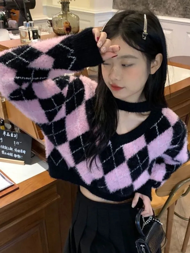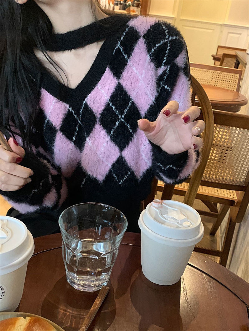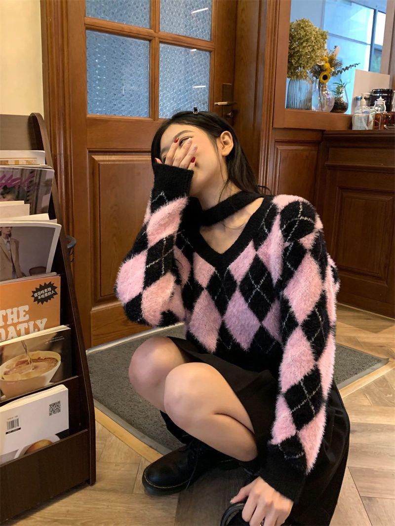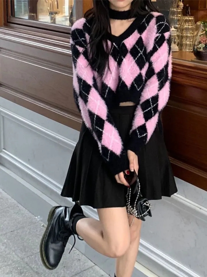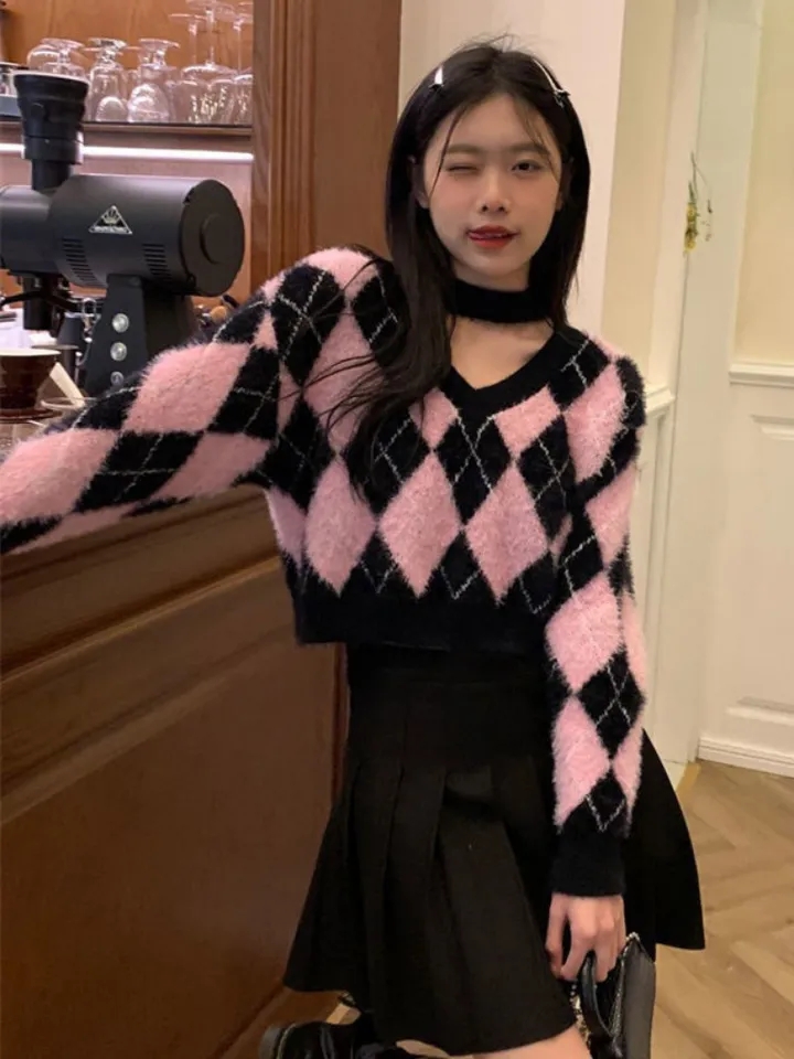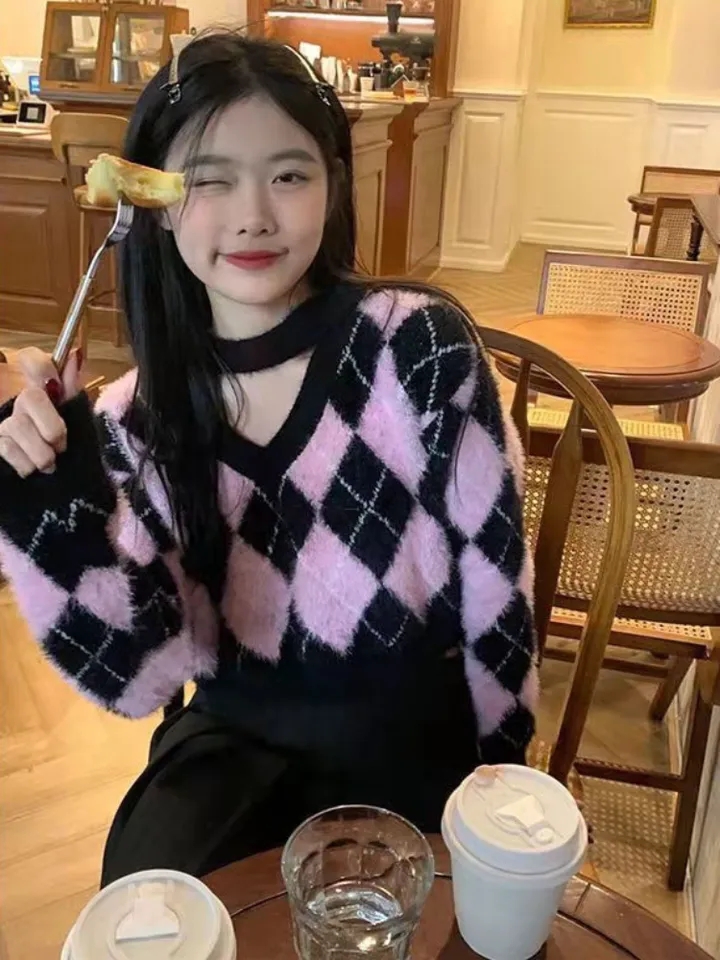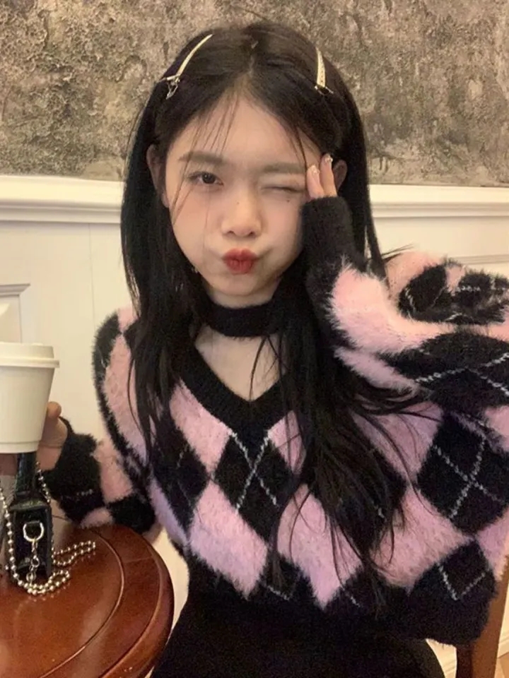 Cute Bunny Rabbit Embroidery Preppy Knit V Neck Vest Sweater Sweatshirt Loose Jumper Pullover Casual E-Girl Kawaii Korean Japanese Harajuku Streetwear