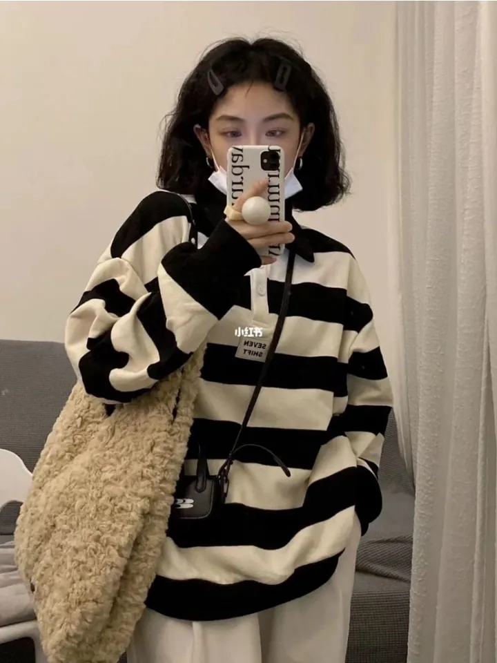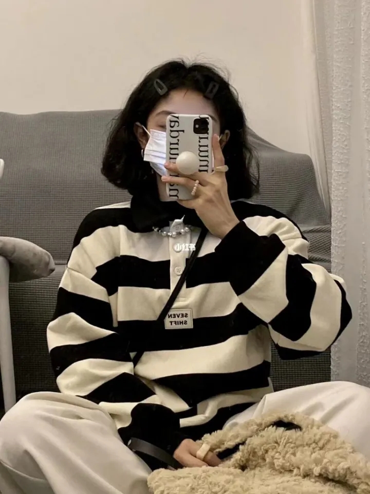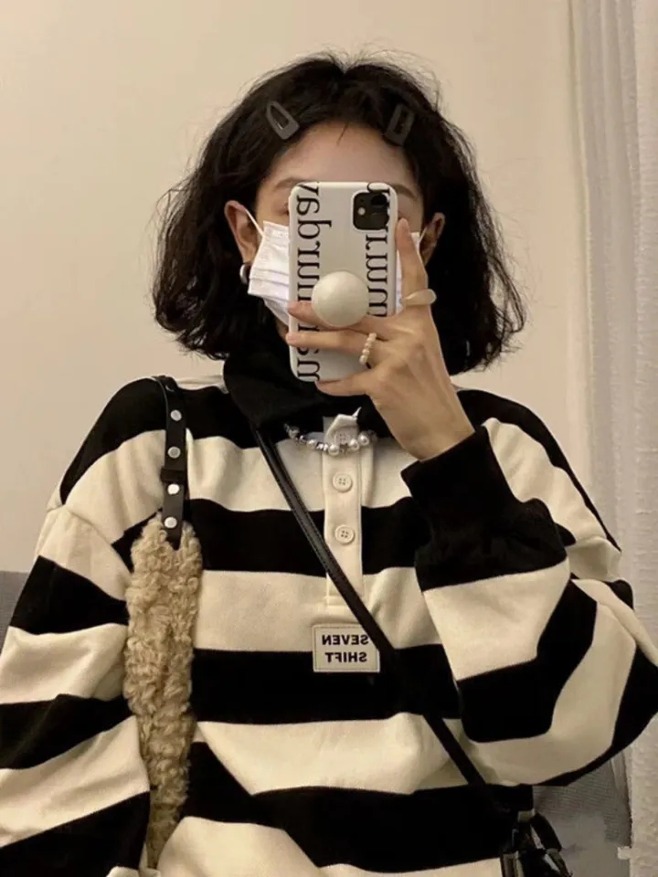 Cute Sweet 90s Hot Pink Heart Striped Long Sleeve Knit Top Sweater Sweatshirt Pullover Jumper Autumn E-Girl Kawaii Korean Japanese Harajuku Streetwear