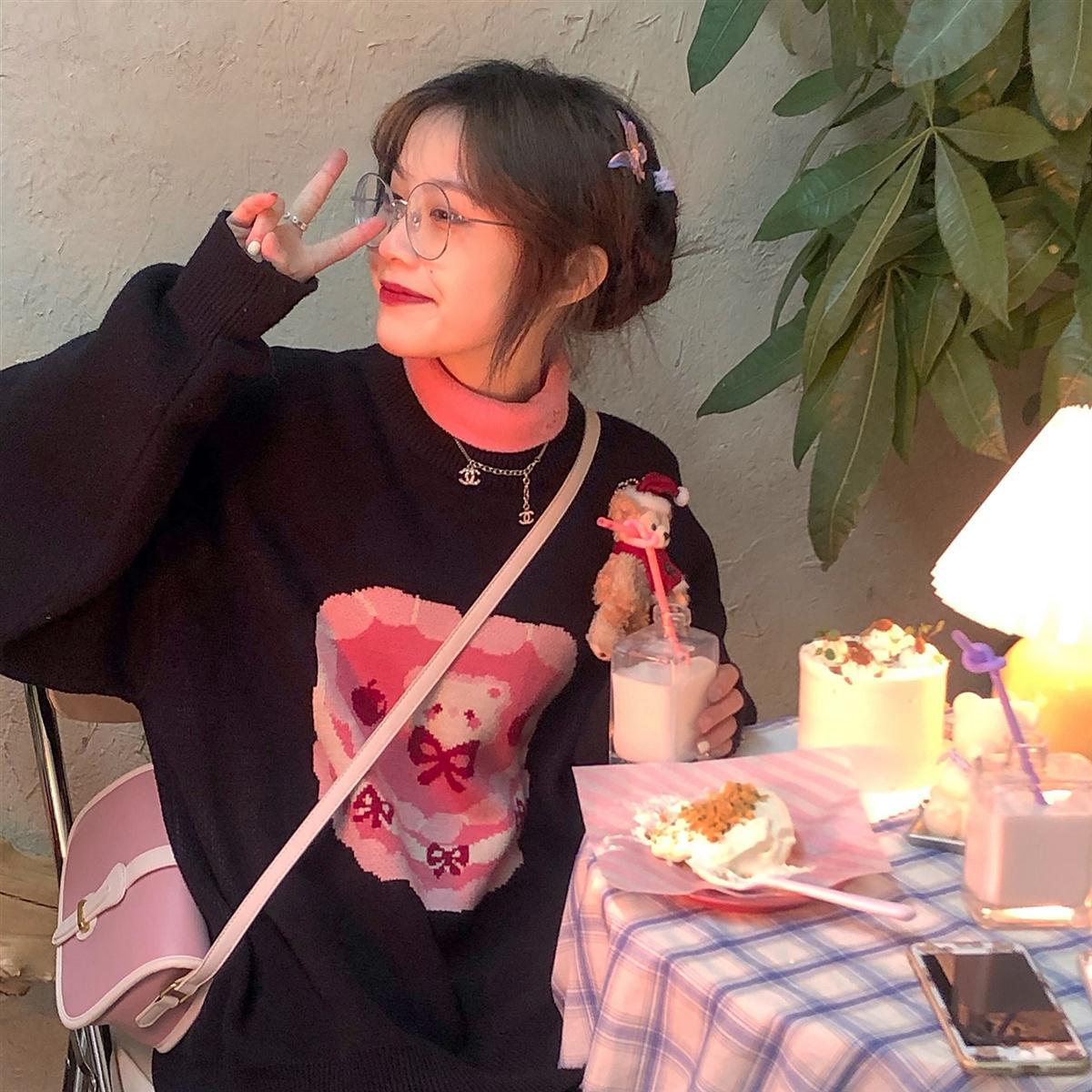 Cute Rainbow Cool Letter Embroidery Aesthetic Sweatshirt Long Sleeve Shirt Turtleneck Top Casual E-Girl Kawaii Korean Japanese Harajuku Streetwear