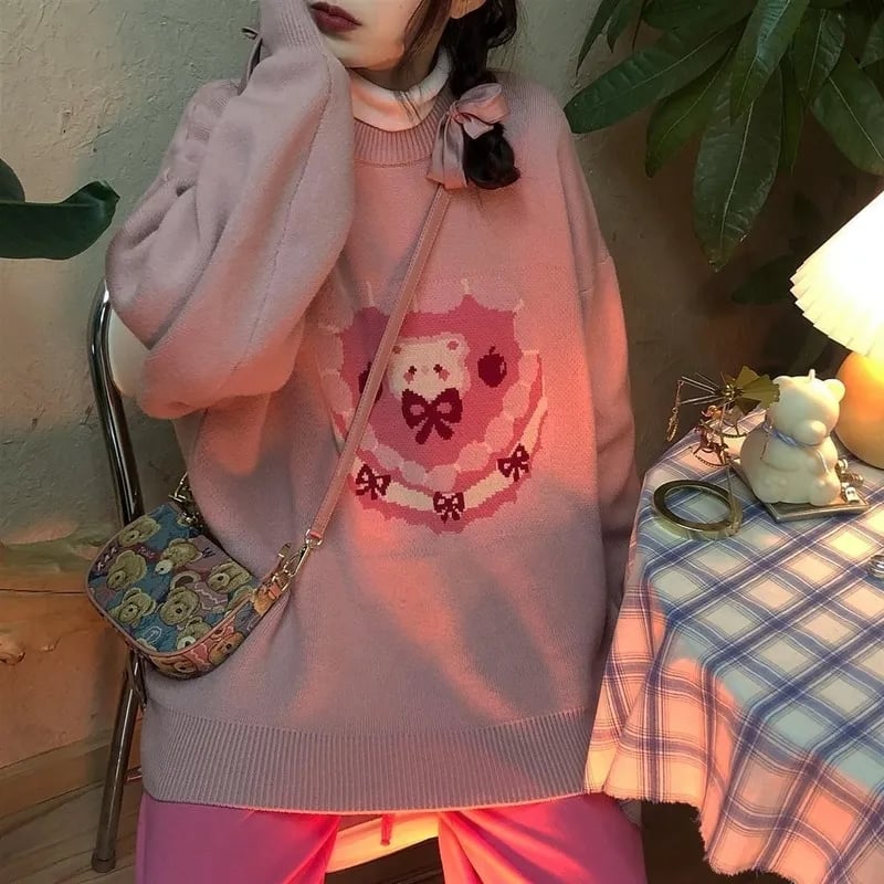 Pastel Rainbow Tie Dye Stripe Loose Oversize Knit Long Sleeve Sweatshirt Sweater Pullover Jumper E-Girl Kawaii Korean Japanese Harajuku Streetwear