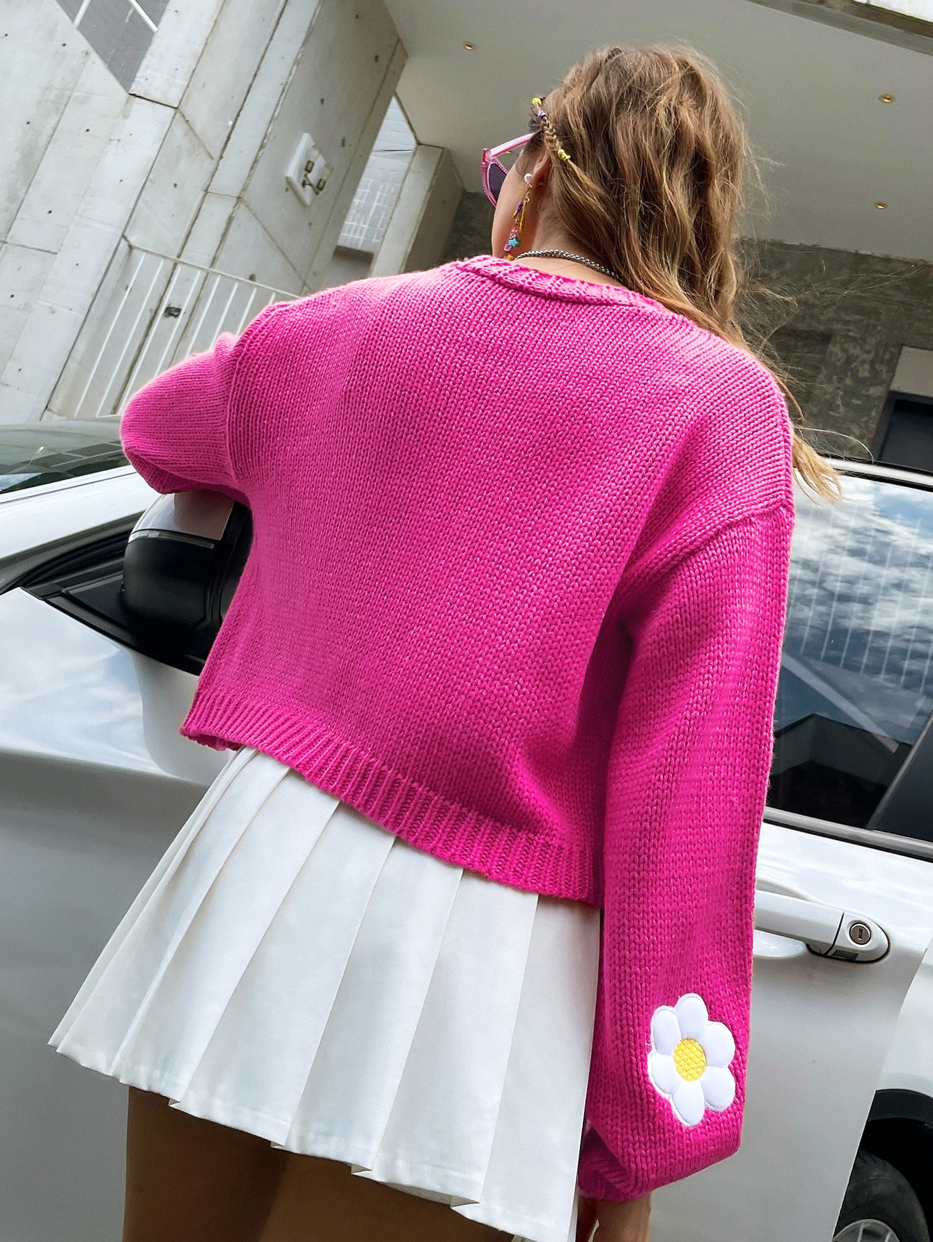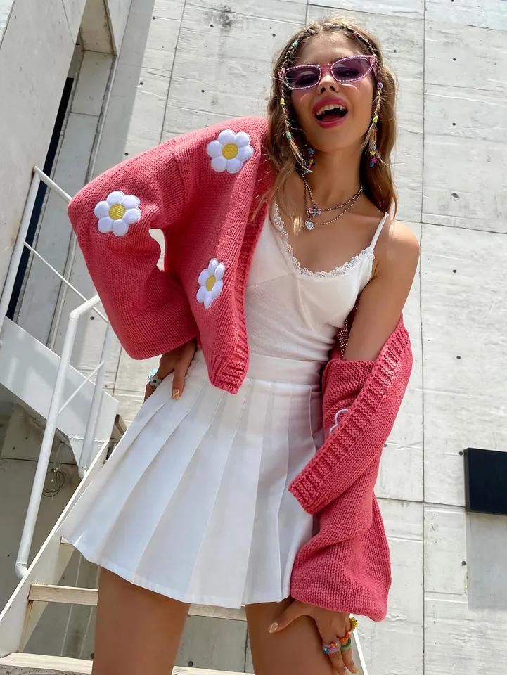 Floral Crochet Knit Lantern Sleeve Cardigan