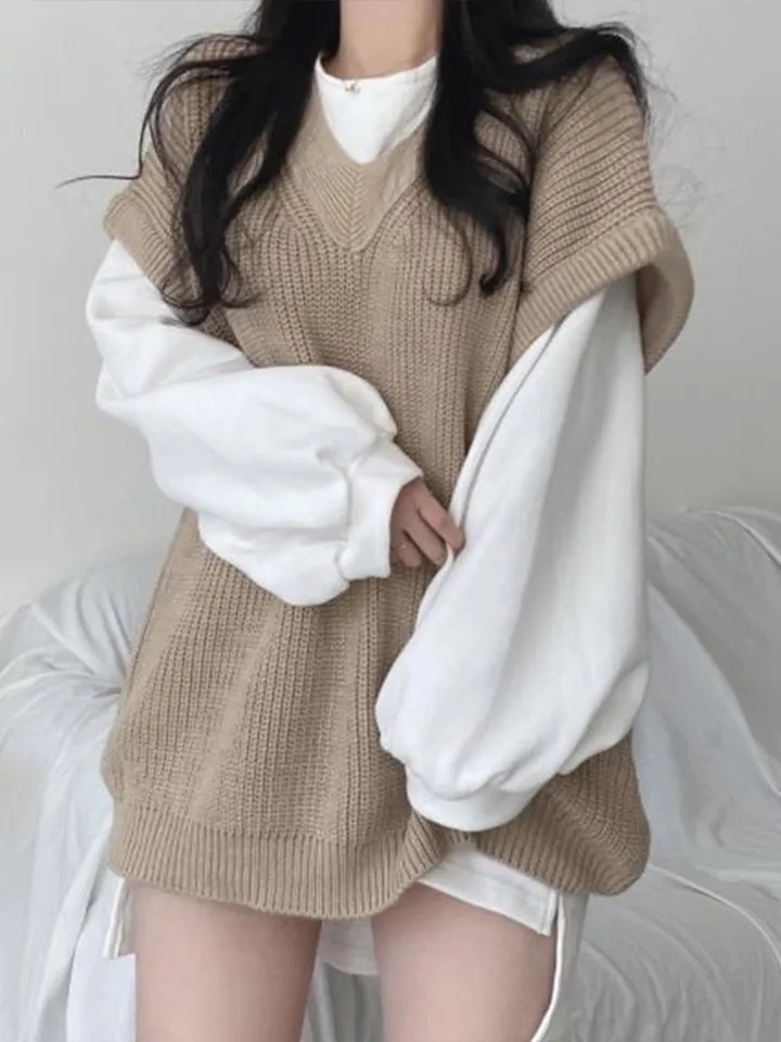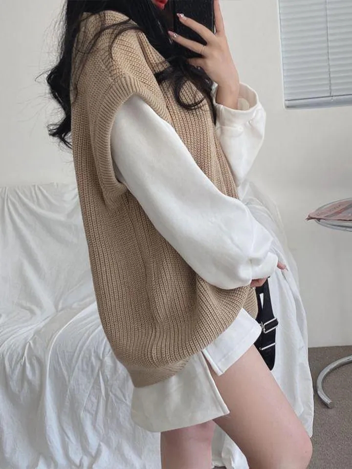 Cute Argyle Plaid Sleeveless V Neck Knit Sweater Sweatshirt Preppy Crop Top Pullover Aesthetic E-Girl Kawaii Korean Japanese Harajuku Streetwear