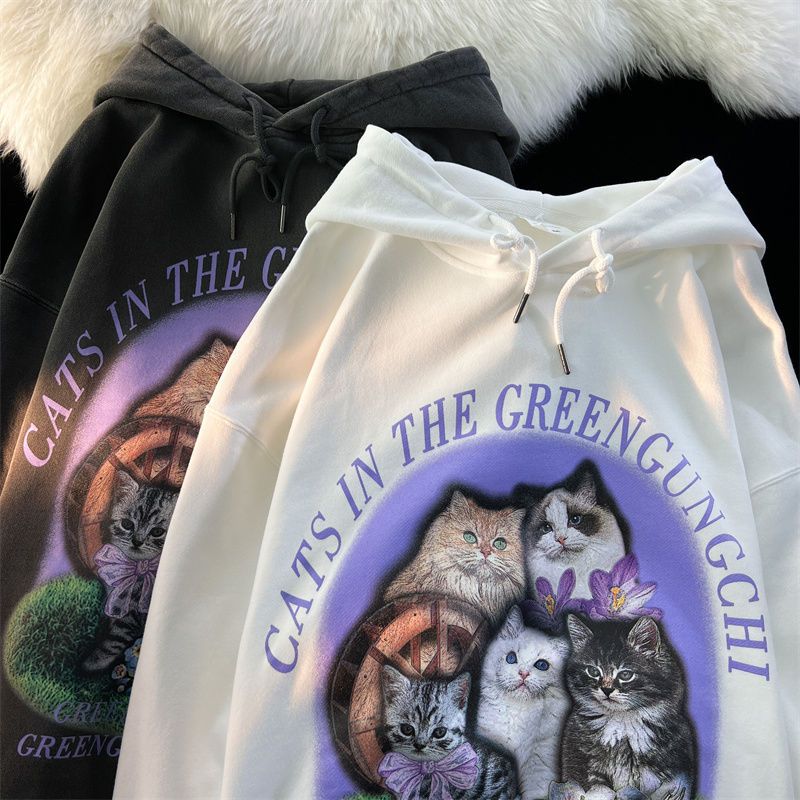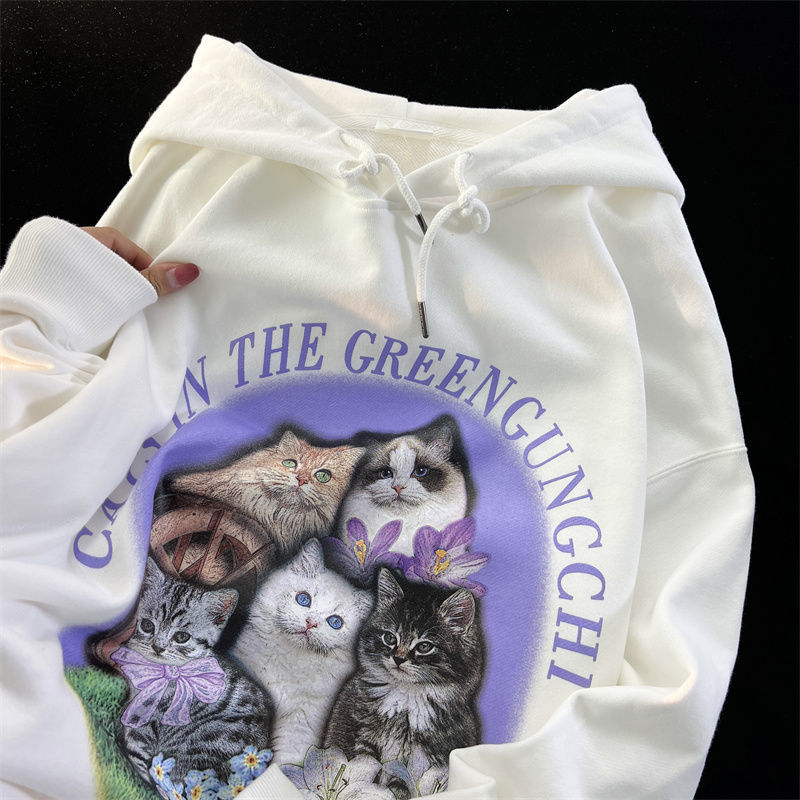 Purple Flower Kitten Print Oversized Hoodie