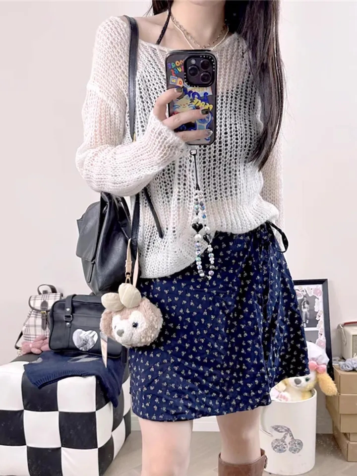 Cute Retro Vintage Argyle Preppy Knit Cardigan Sweater Jumper Short Sleeve Crop Top Aesthetic Goth E-Girl Kawaii Korean Japanese Harajuku Streetwear