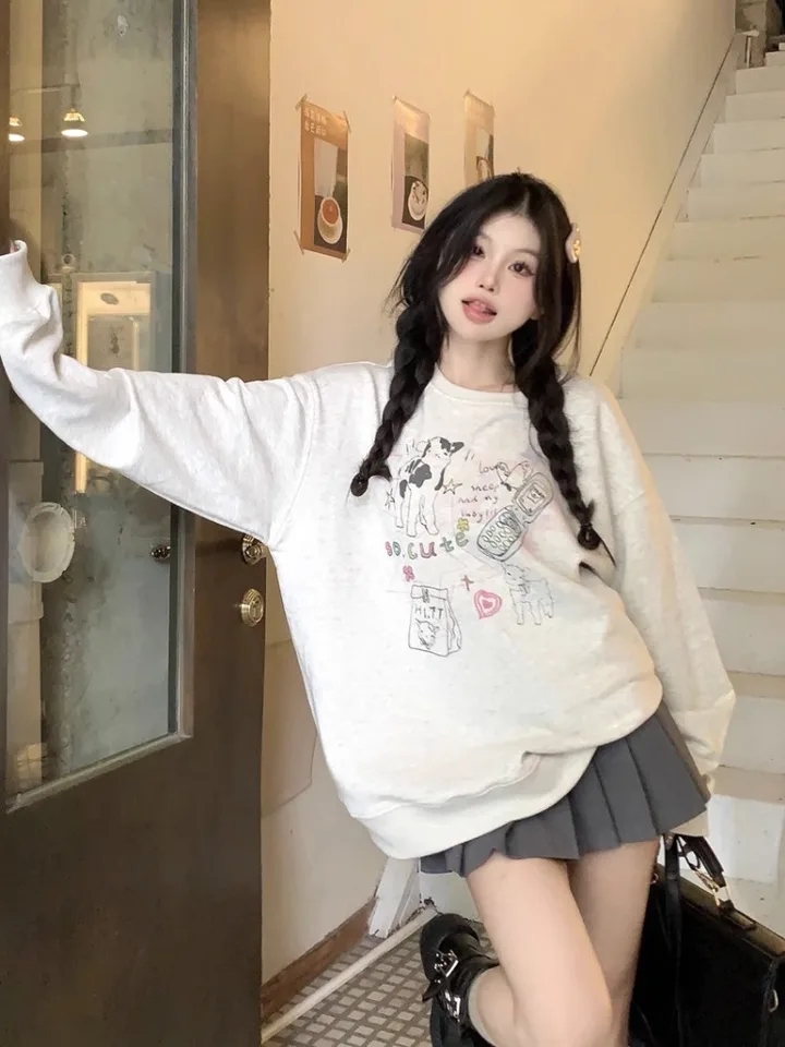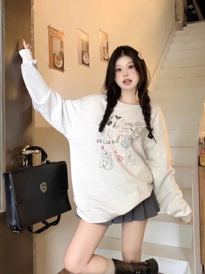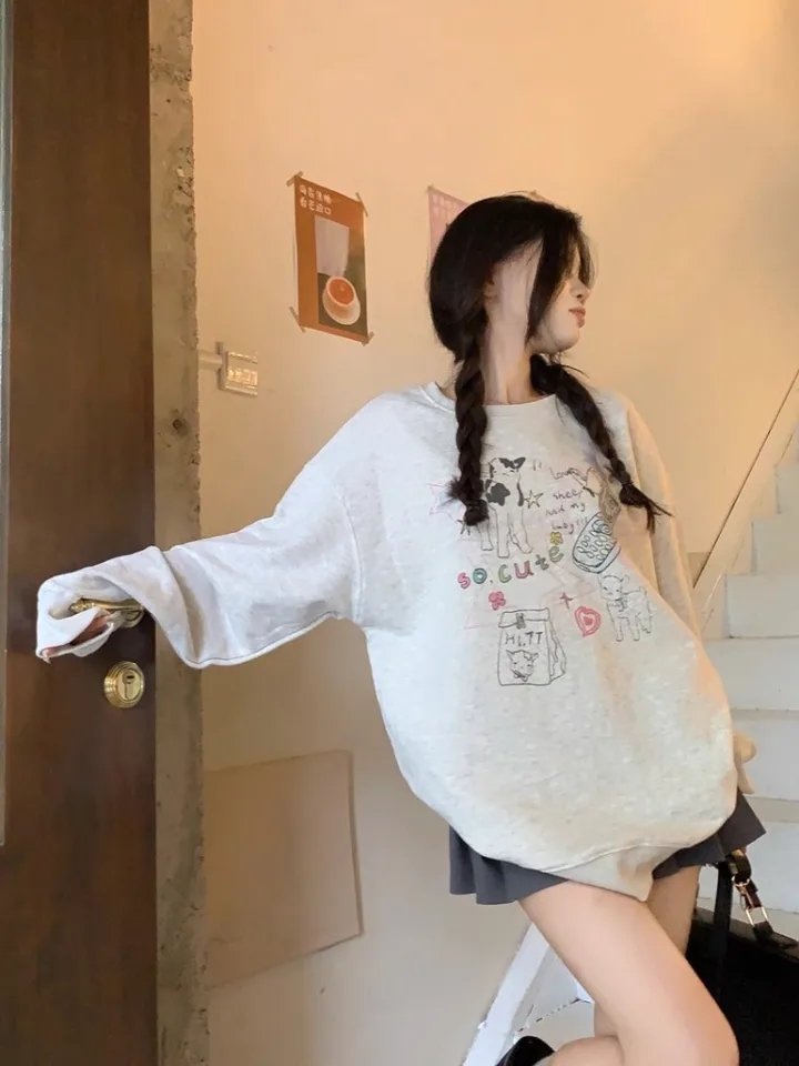 Cute Rainbow Embroidery Fleece Hoodie Sweater Sweatshirt Pullover 90s Oversized Long Sleeve E-Girl Kawaii Korean Japanese Harajuku Retro Streetwear