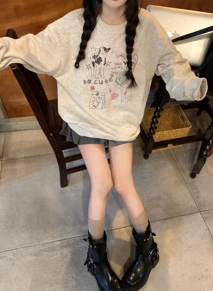 2PCS Rabbit Print Tracksuit Hoodie + Mini Skirt Set