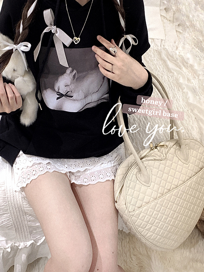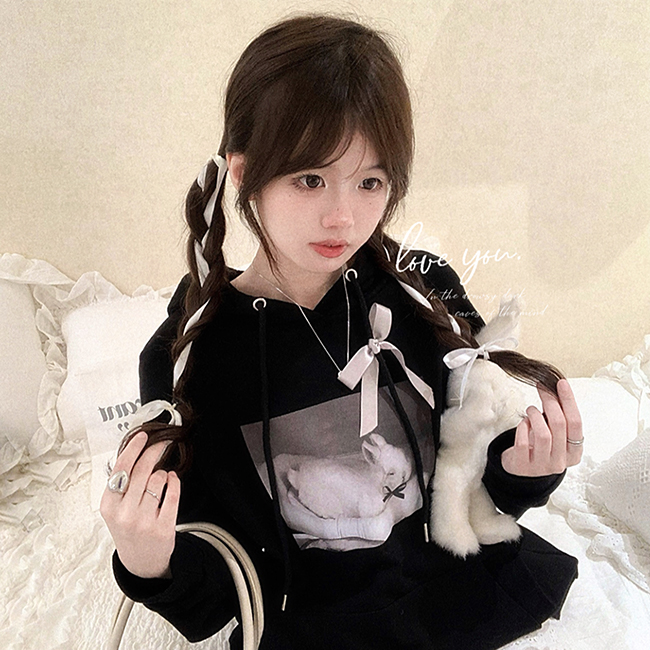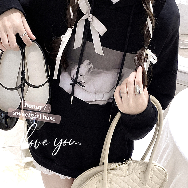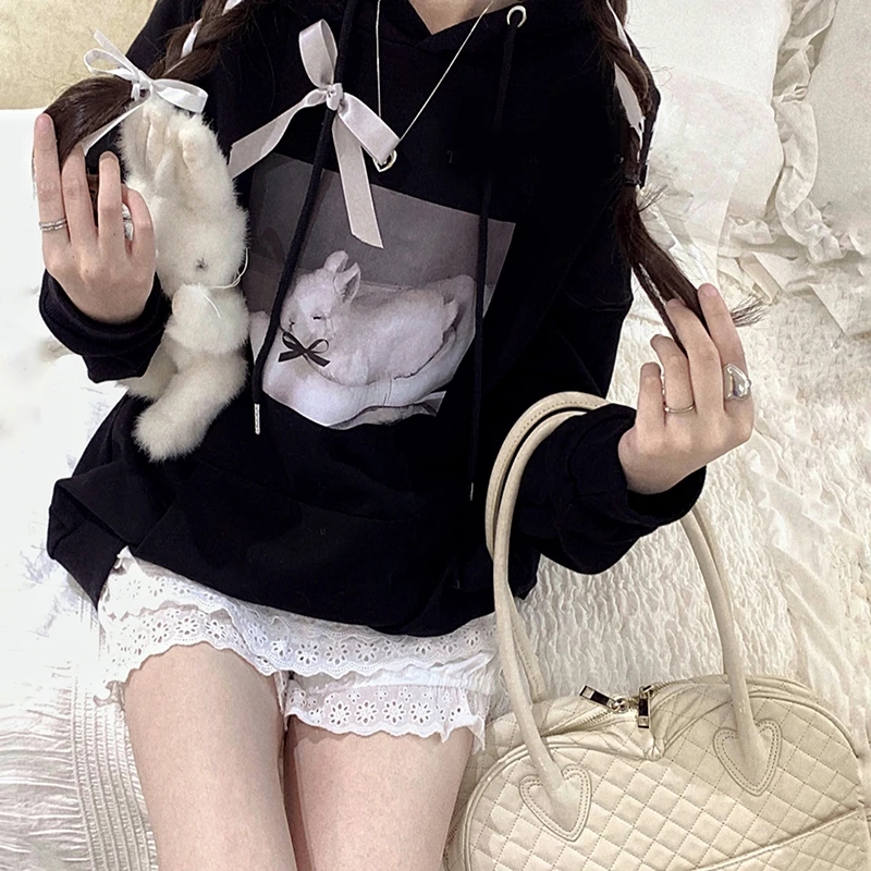 Cute Pastel Anime Girl Teddy Bear Cartoon Graphic Print Oversized Fleece Hoodie Sweatshirt Aesthetic Casual E-Girl Kawaii Korean Japanese Harajuku