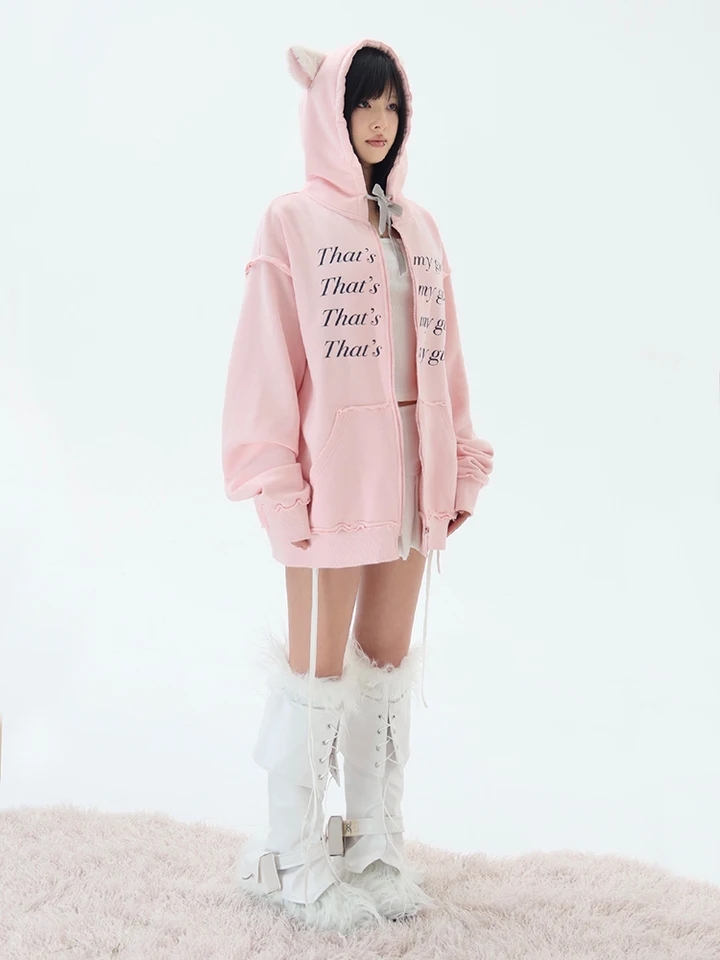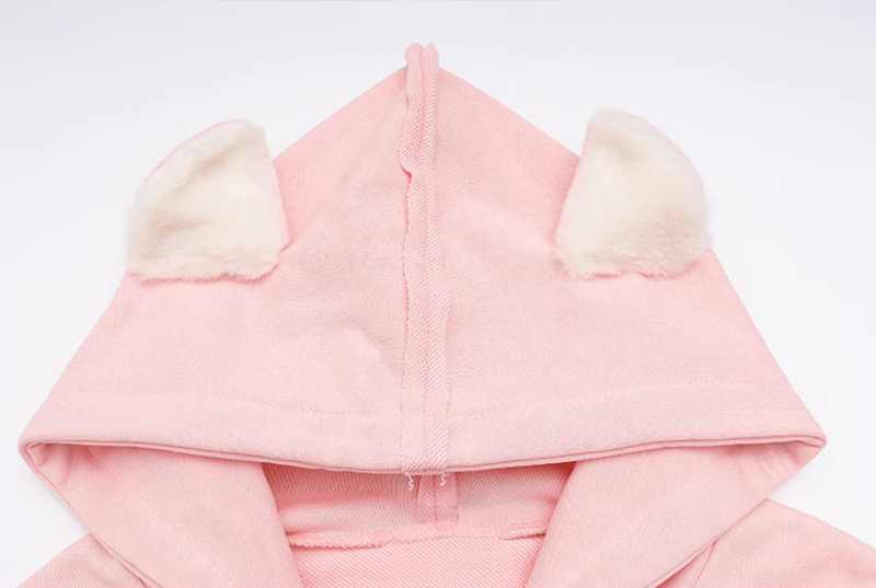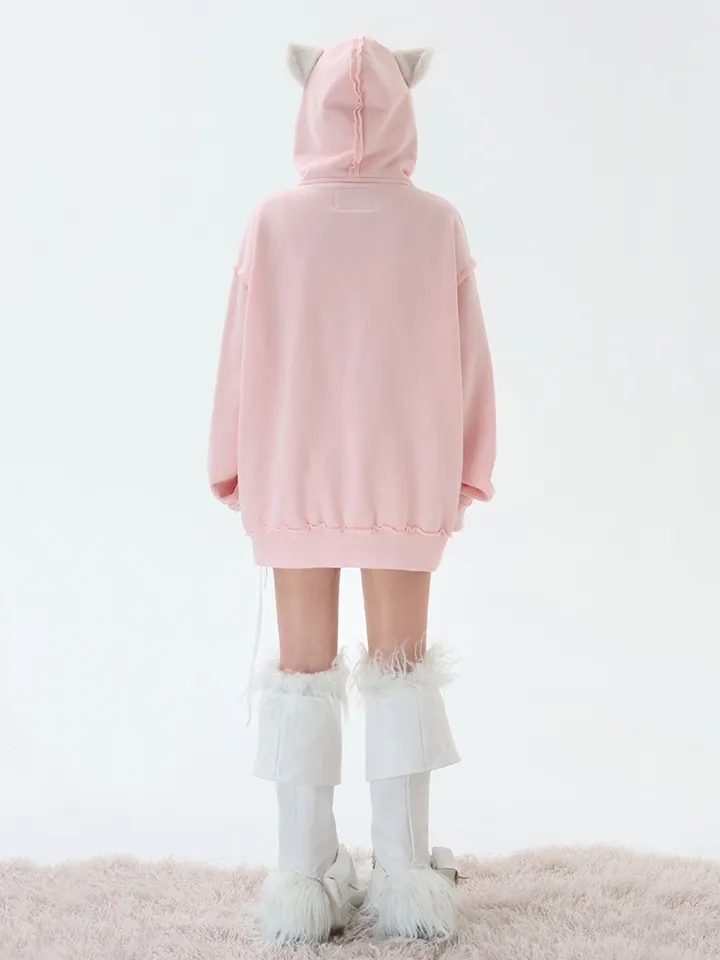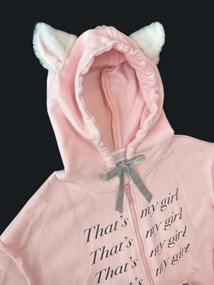 Pink Fluffy Cat Ears Letter Print Sweatshirt