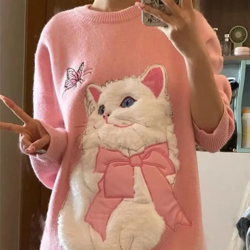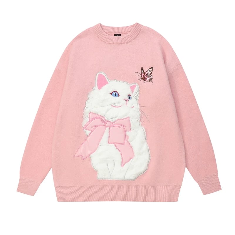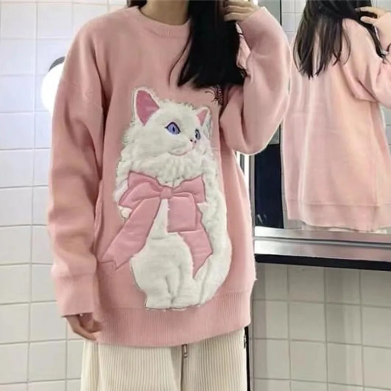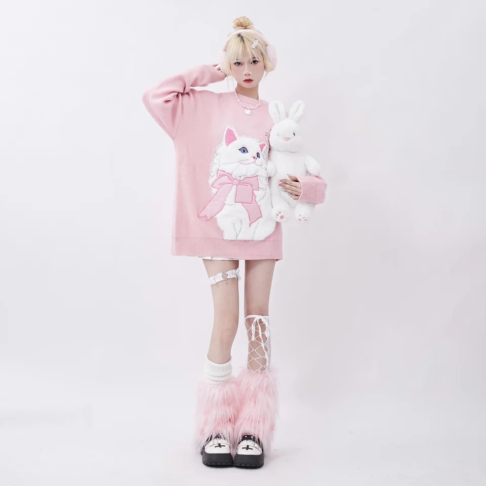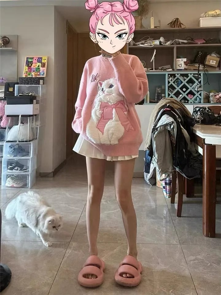 Cute Pink Daisy Flower Knit Crochet Loose Cardigan Long Sleeve V Neck Sweater Aesthetic E-Girl Kawaii Korean Japanese Harajuku