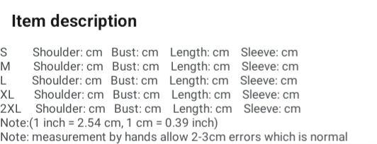 100% Brand New and High Quality . Material: Polyester, Cotton. Size: As shown on size chart.