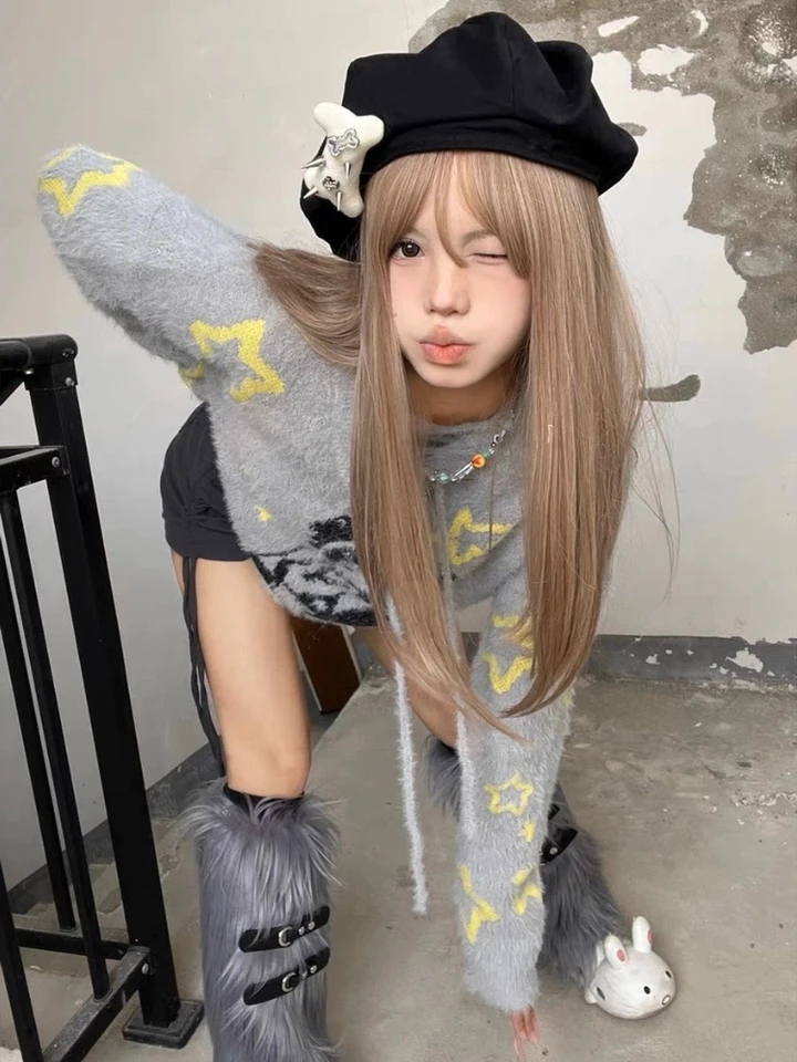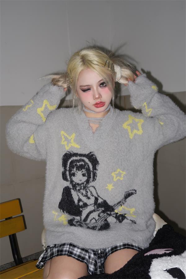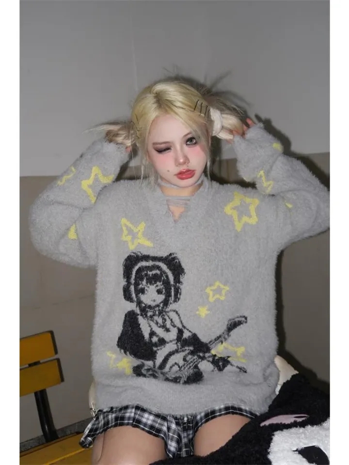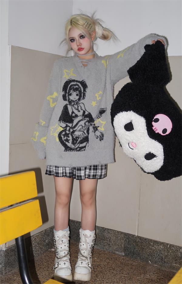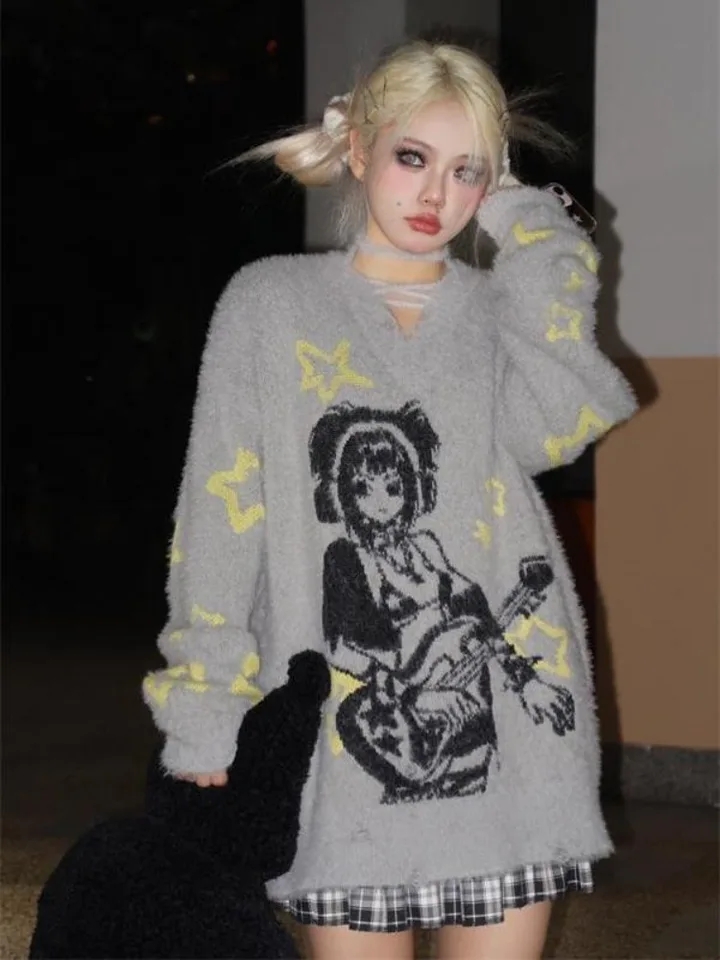 Grey Anime Girl Oversized Sweater