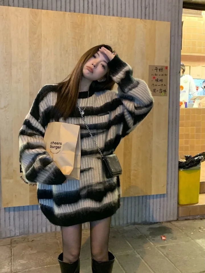 Cute Pink Daisy Flower Knit Crochet Loose Cardigan Long Sleeve V Neck Sweater Aesthetic E-Girl Kawaii Korean Japanese Harajuku