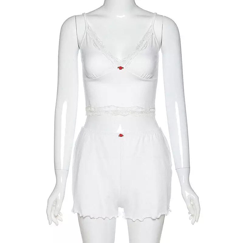 Rose Embroidery 2pcs Set Tracksuit Crop Top + Shorts Pajama Set Loungewear Summer Aesthetic Casual E-Girl Kawaii Korean Japanese Harajuku
