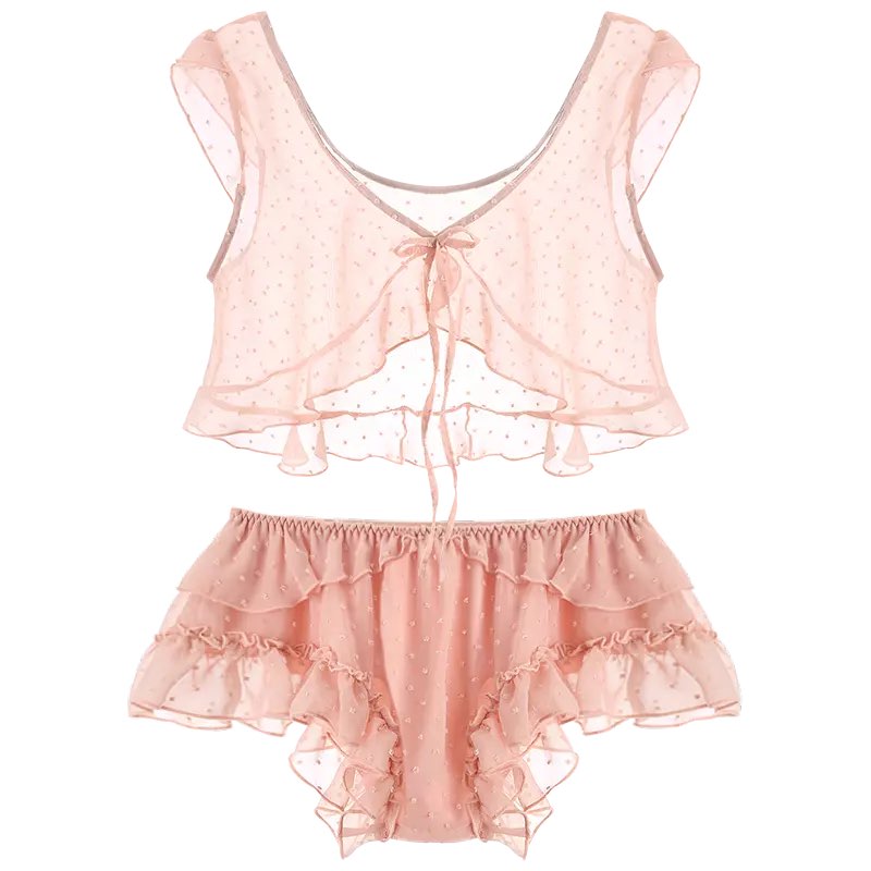 Pink Polka Dot Lace Sleep Dress Lingerie Sleepwear Pajama Set Loungewear Summer Aesthetic Casual E-Girl Kawaii Korean Japanese Harajuku