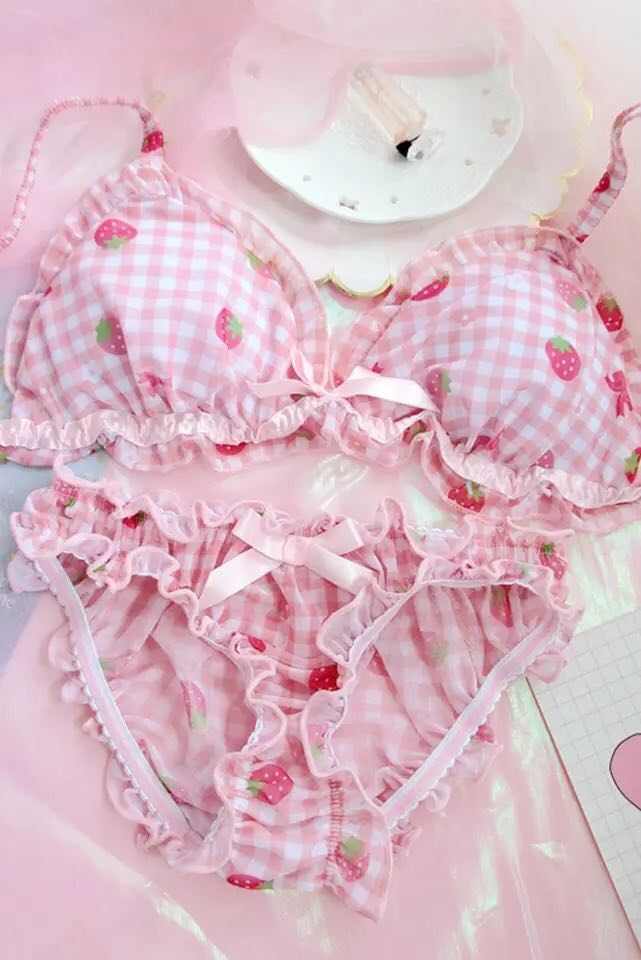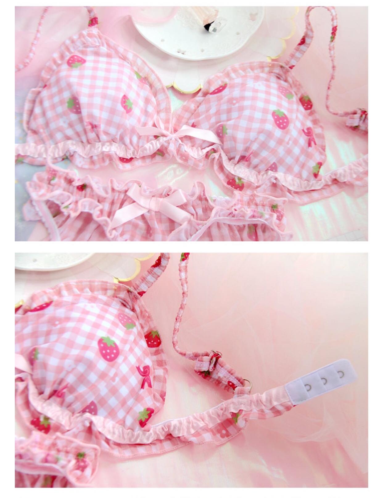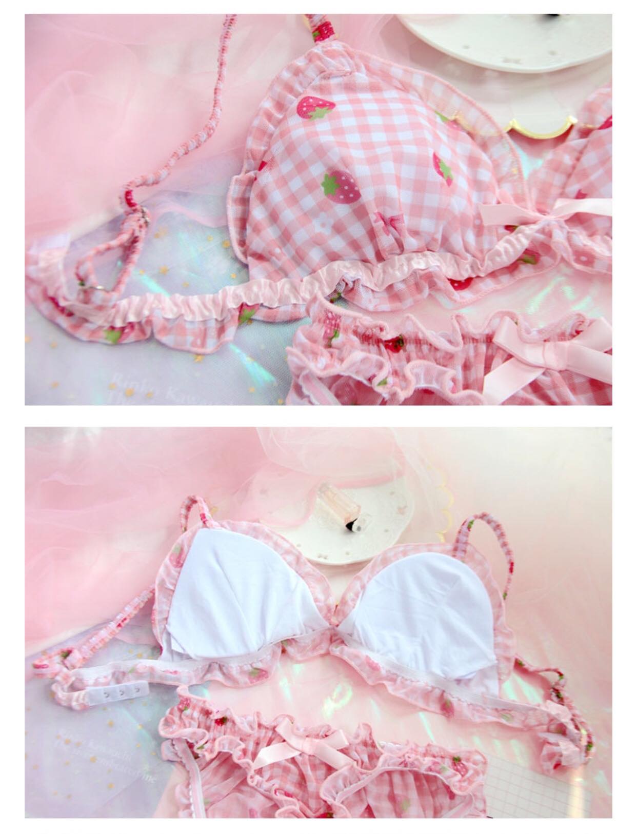 Strawberry Print Bra + Panty Set Lingerie Underwear Summer Aesthetic Casual E-Girl Kawaii Korean Japanese Harajuku
