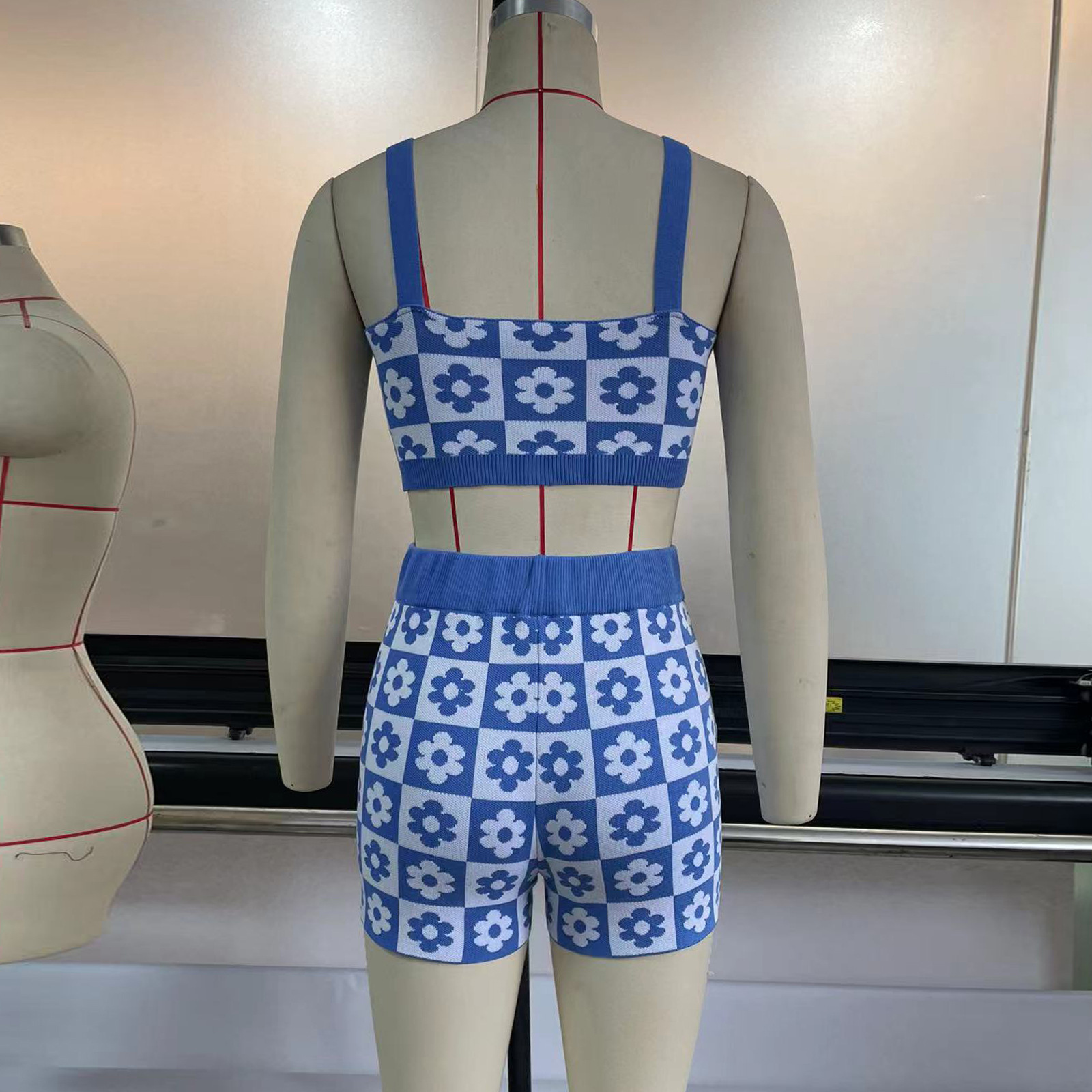 Blue Flower Checkboard Tank Top + Shorts