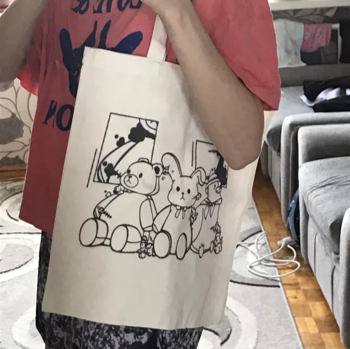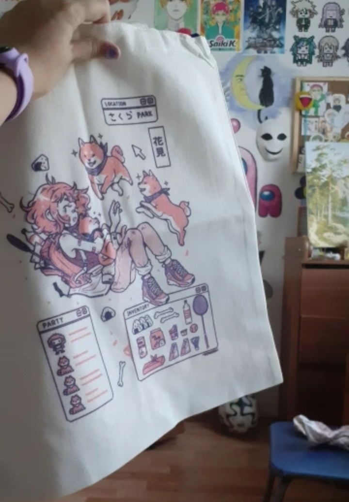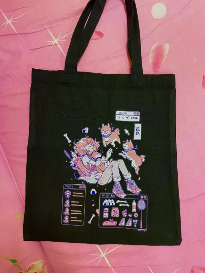 Cute Shiba Inu Anime Girl Cartoon Tote Canvas Bag Shopper Shoulder Bag Aesthetic Casual Summer E-Girl Kawaii Korean Japanese Harajuku