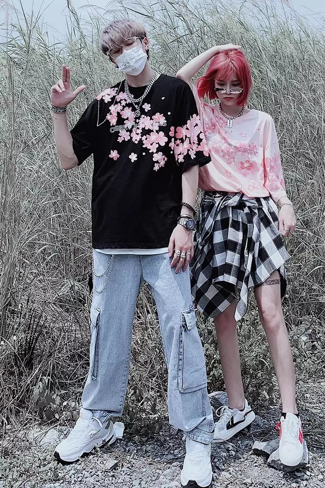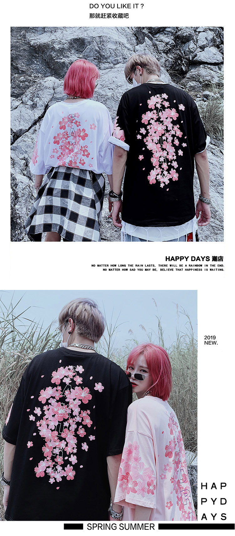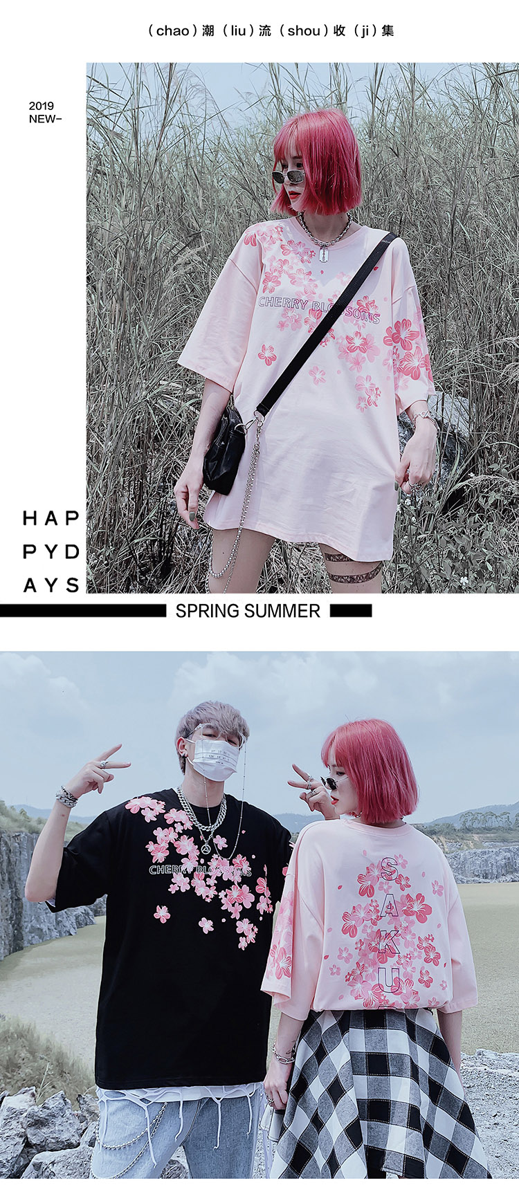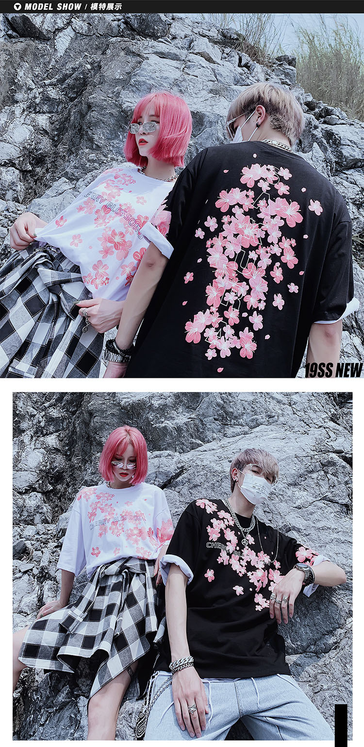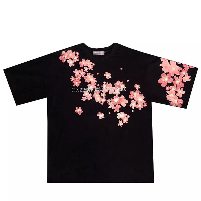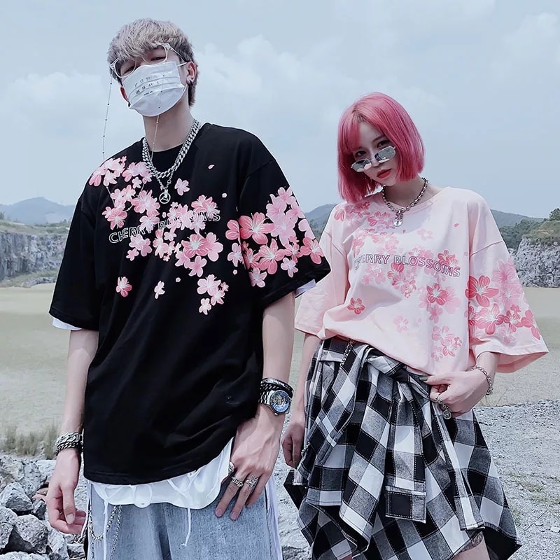 Cute Cherry Blossom Sakura Flower Graphic Print Oversized Short Sleeve Tee Shirt T-shirt Unisex Top E-Girl Kawaii Korean Japanese Harajuku Streetwear