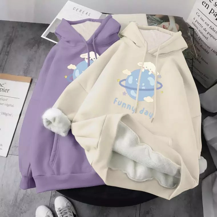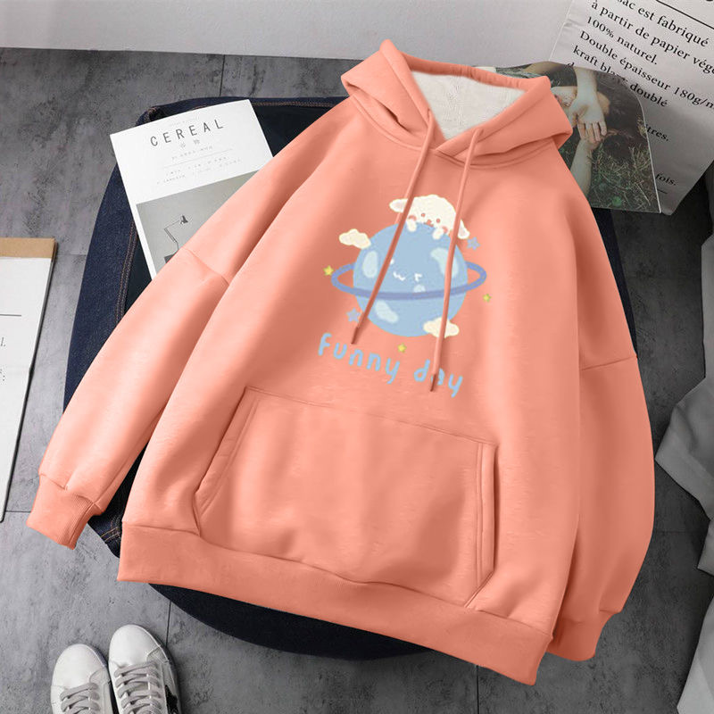 Cute Dog Poodle Earth Cartoon Print Oversized Loose Hoodie Sweater Sweatshirt Pullober Jumper Casual E-Girl Kawaii Korean Japanese Harajuku Streetwear