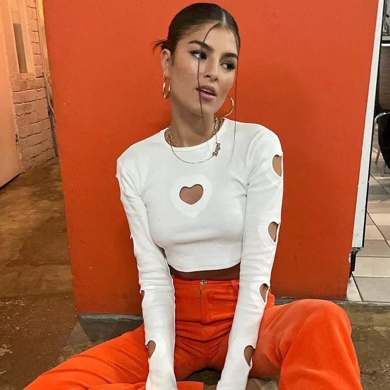 Heart Cut Out Retro White Long Sleeve T-shirt Crop Top Streetwear Summer Aesthetic Casual E-Girl Kawaii Korean Japanese Harajuku