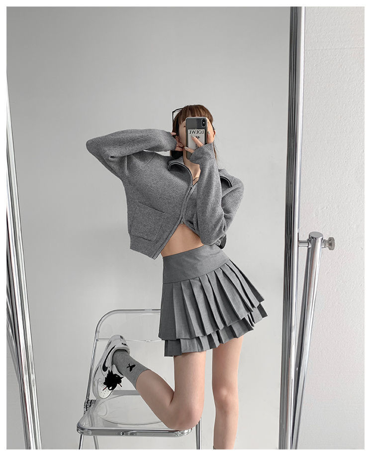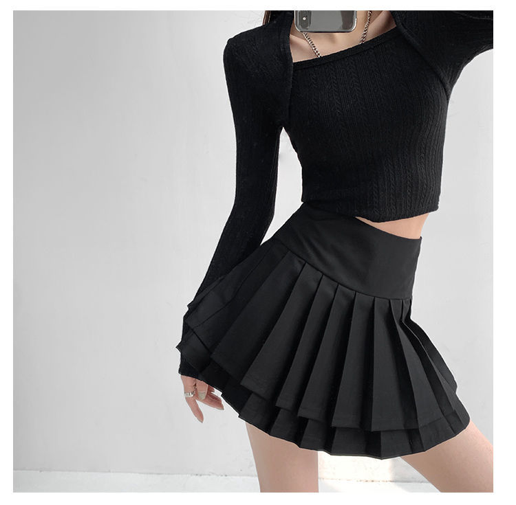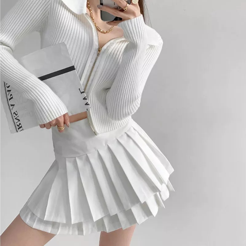Preppy Double Pleated High Waisted Mini Skirt Aesthetic Casual E-Girl Kawaii Korean Japanese Harajuku