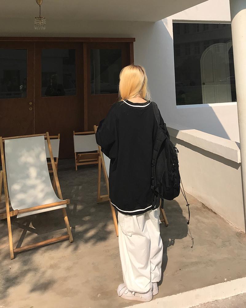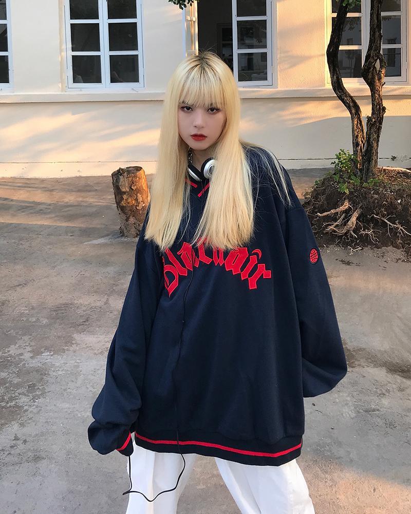 Black Letter Embroidery V Neck Long Sleeve Sweater