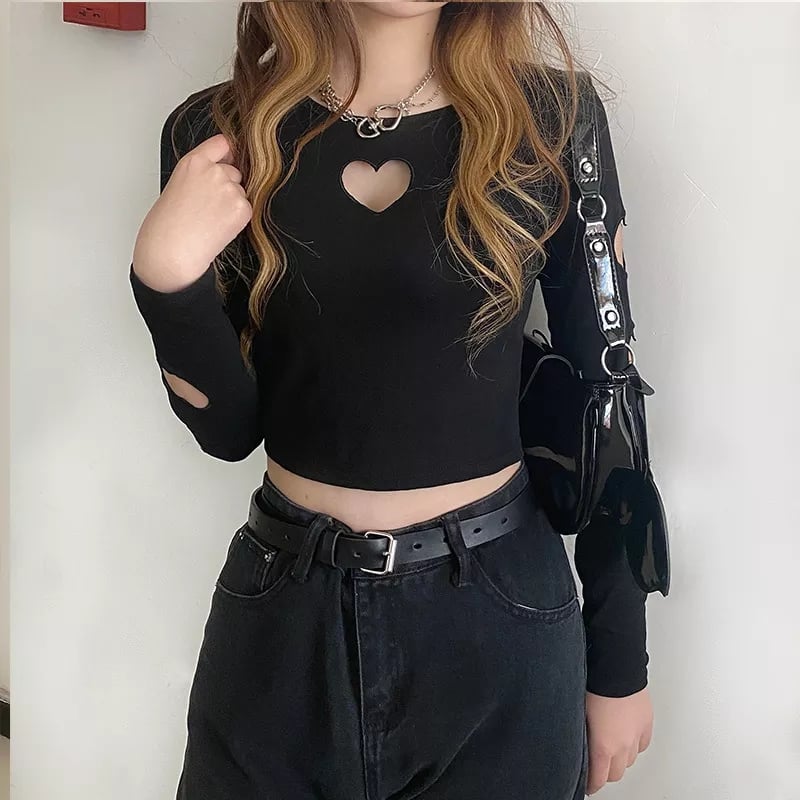 Black Heart Hollow Out Long Sleeve Shirt