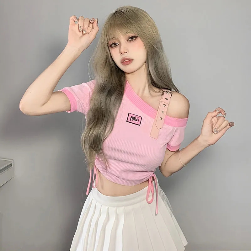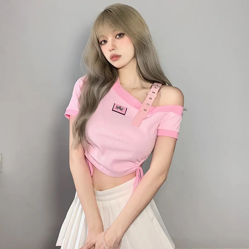 Sweet Pink Off Shoulder Short Sleeve Shirt