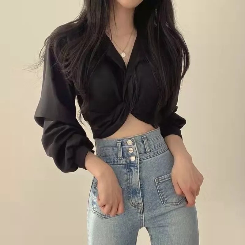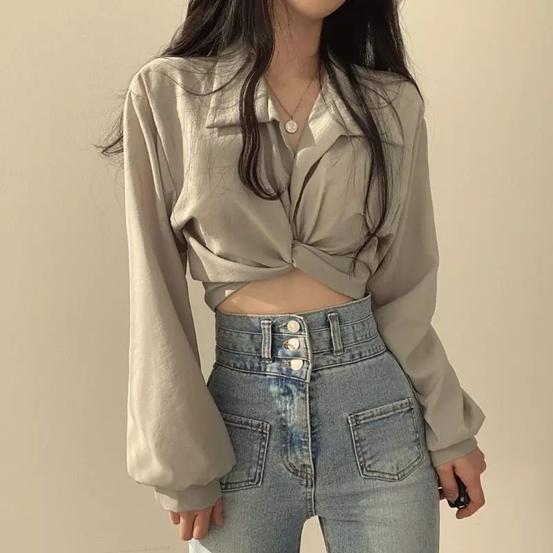 Sweet Lace Up Slash Neck Long Sleeve Shirt