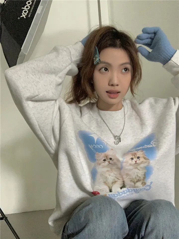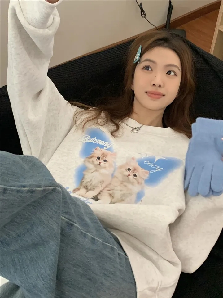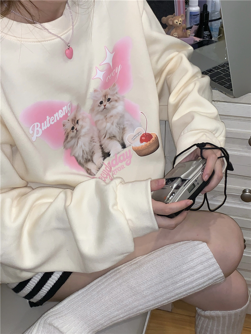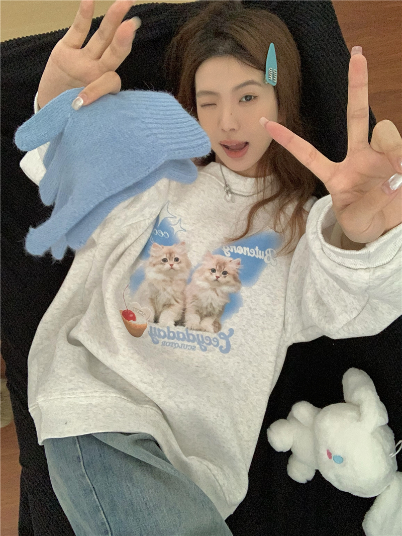 Cat Off Shoulder Frill Long Sleeve Shirt