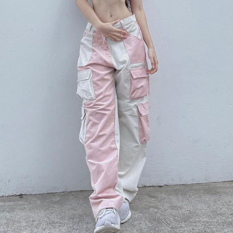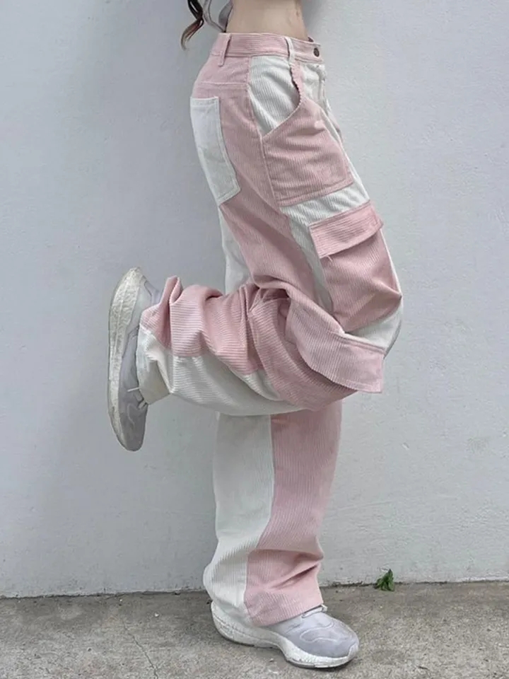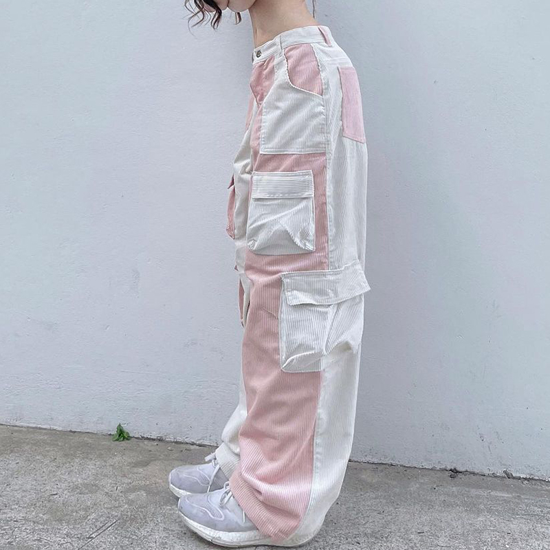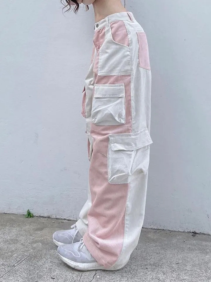 Pink Contrast Patchwork Cargo Pants