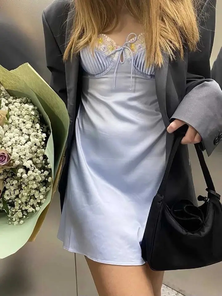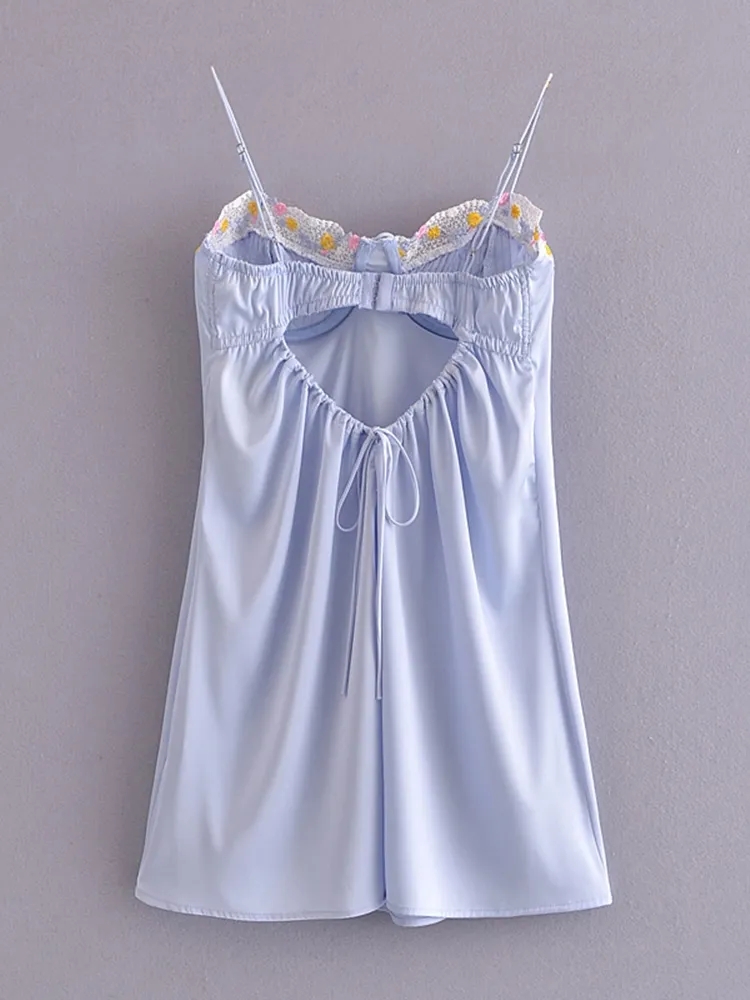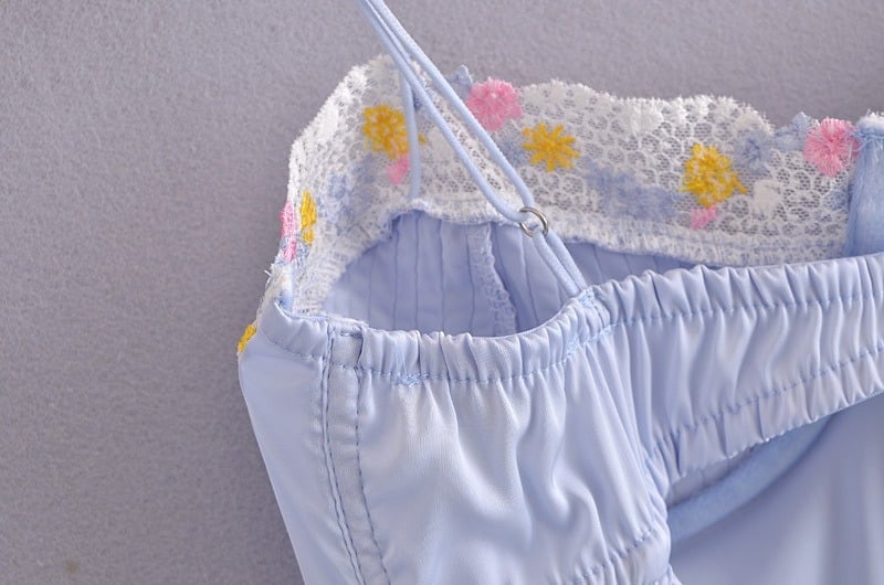 Light Blue Floral Embroidery Mini Dress