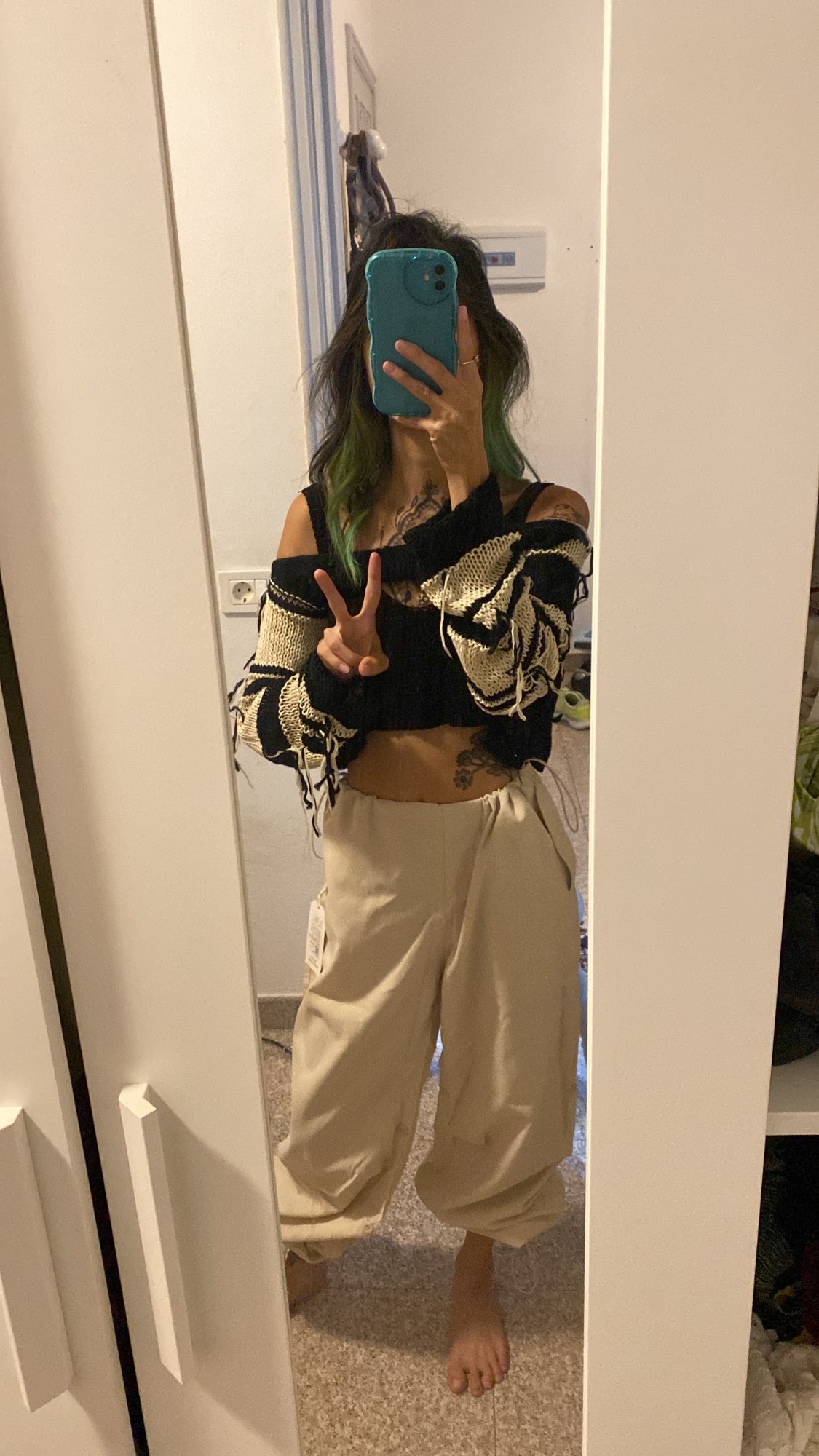 Black & White Crochet Long Sleeve Shirt