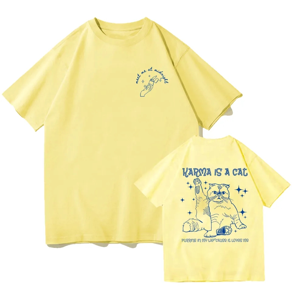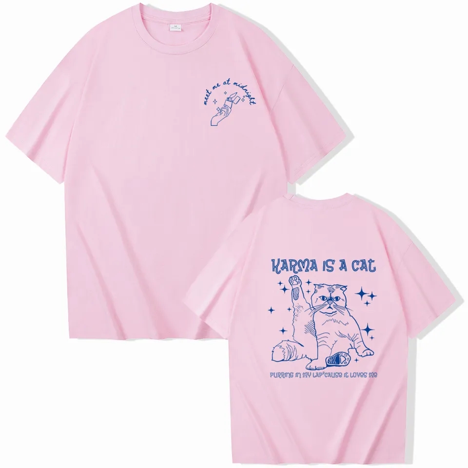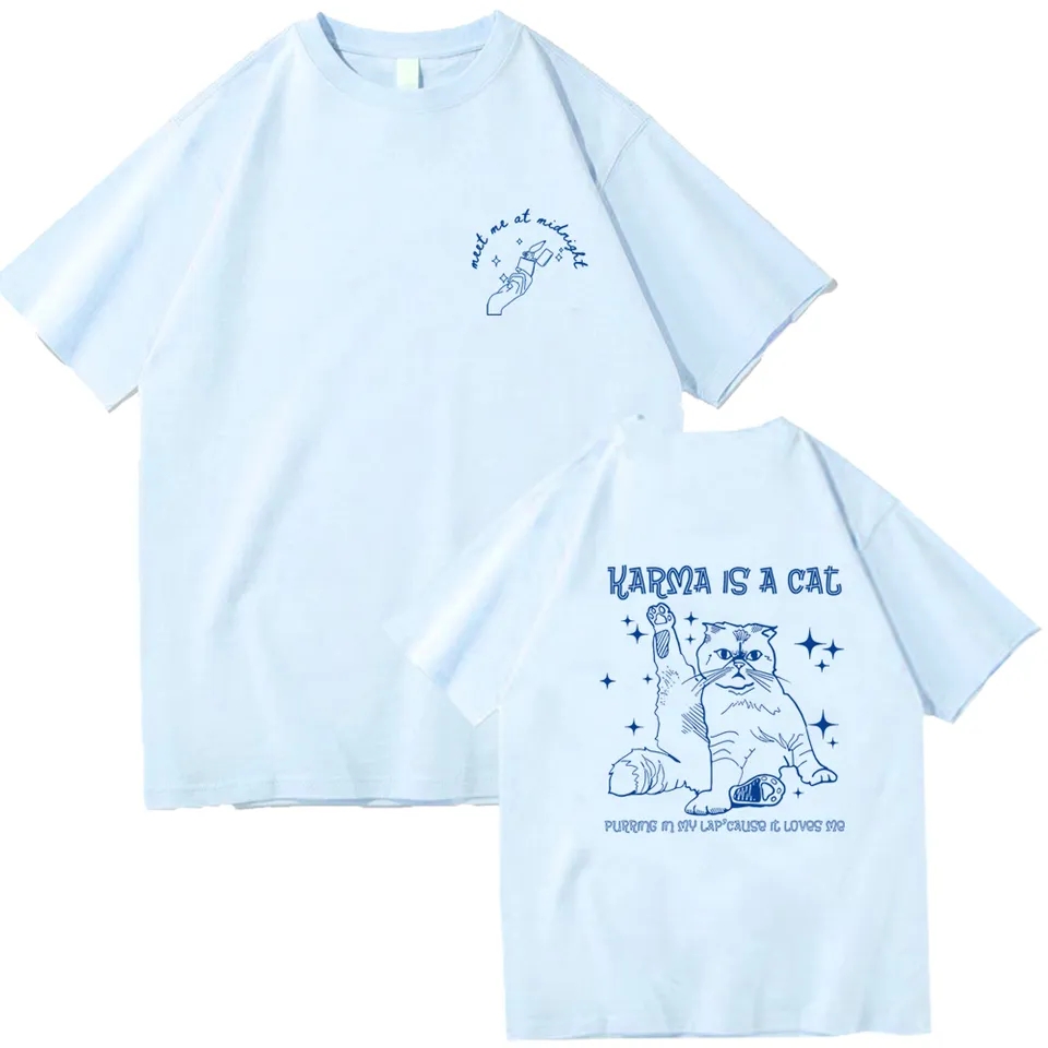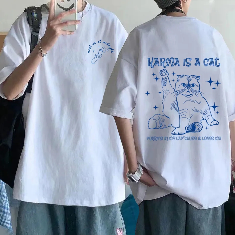 Funny Cat Karma Print Short Sleeve T-shirt