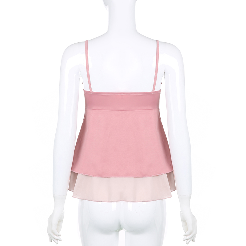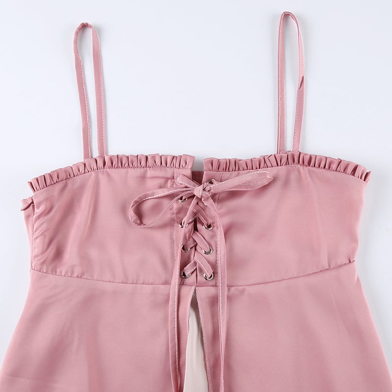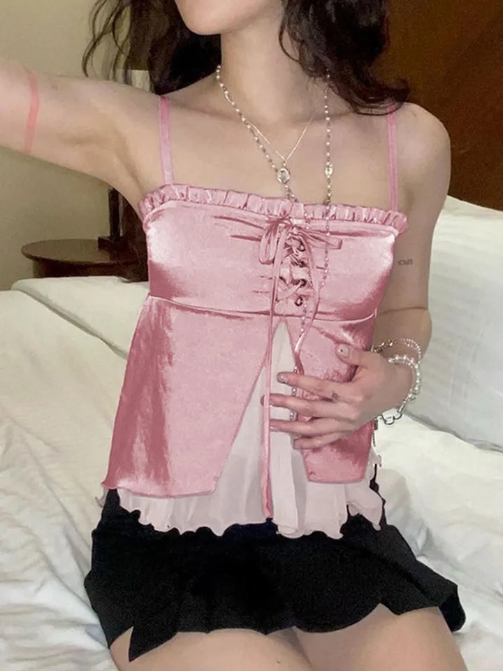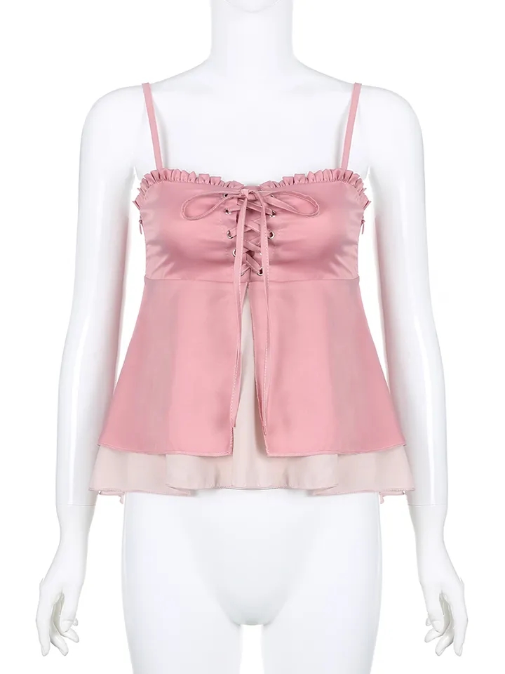 Pink Ruffle 2 Layer Satin Tank Top