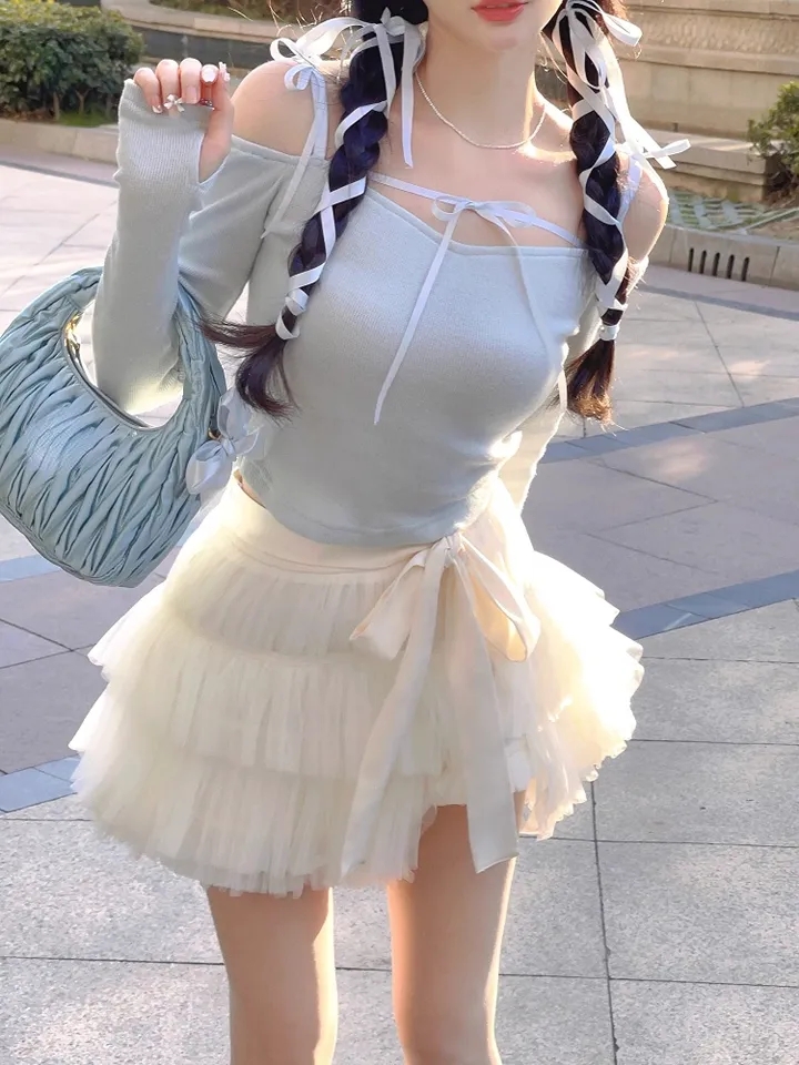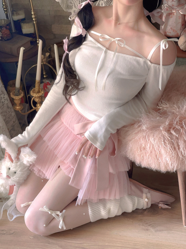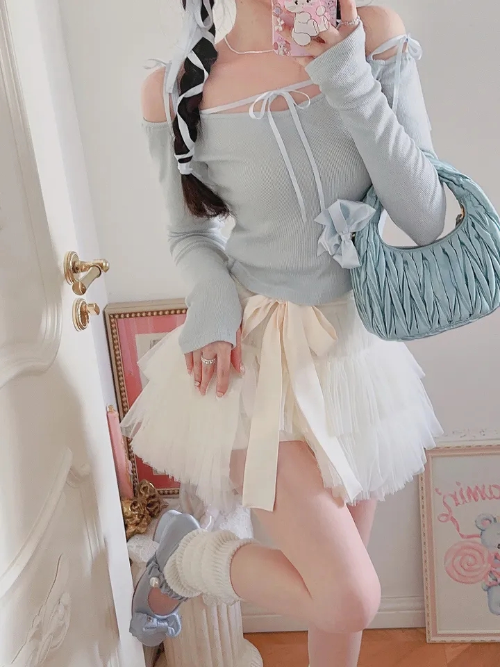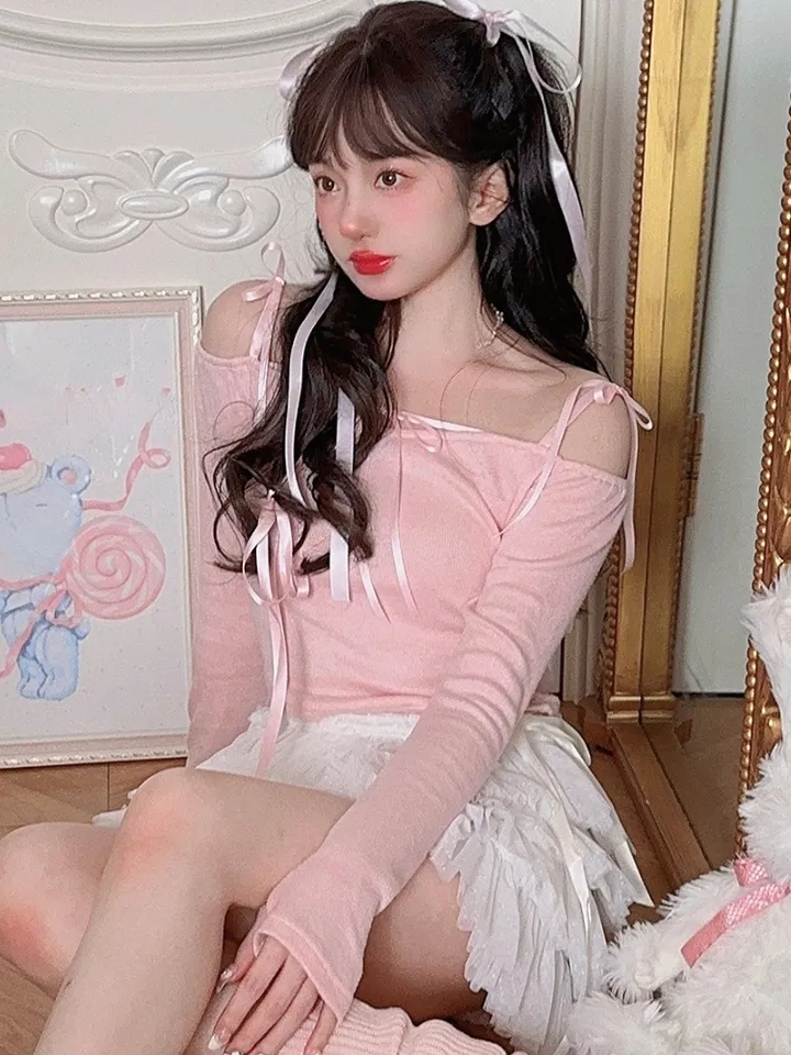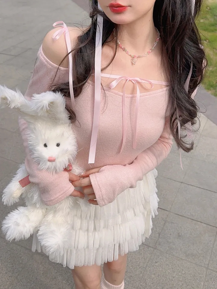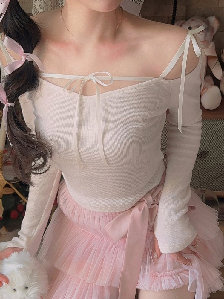 Sweet Bow Off Shoulder Long Sleeve Blouse