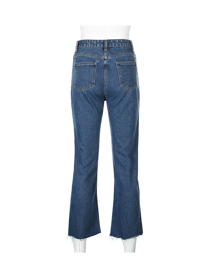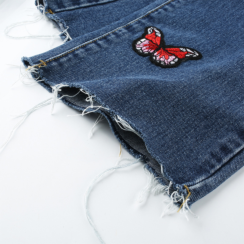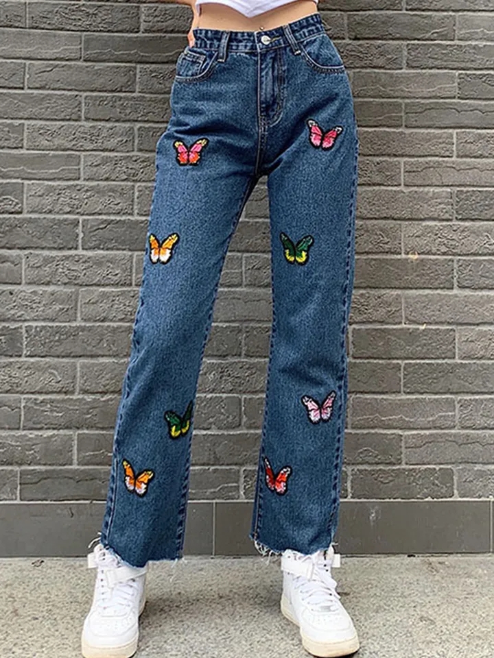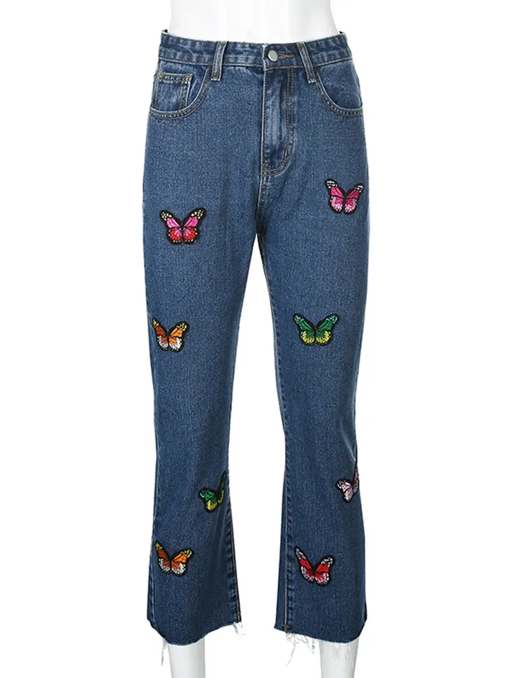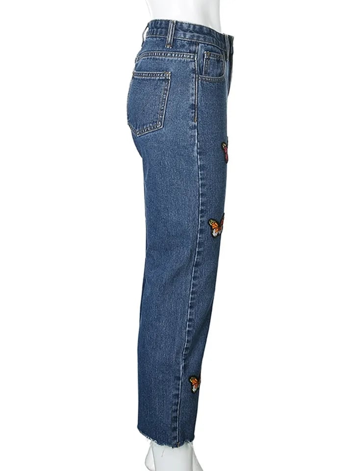 Butterfly Embroidery High Waist Denim Jeans
