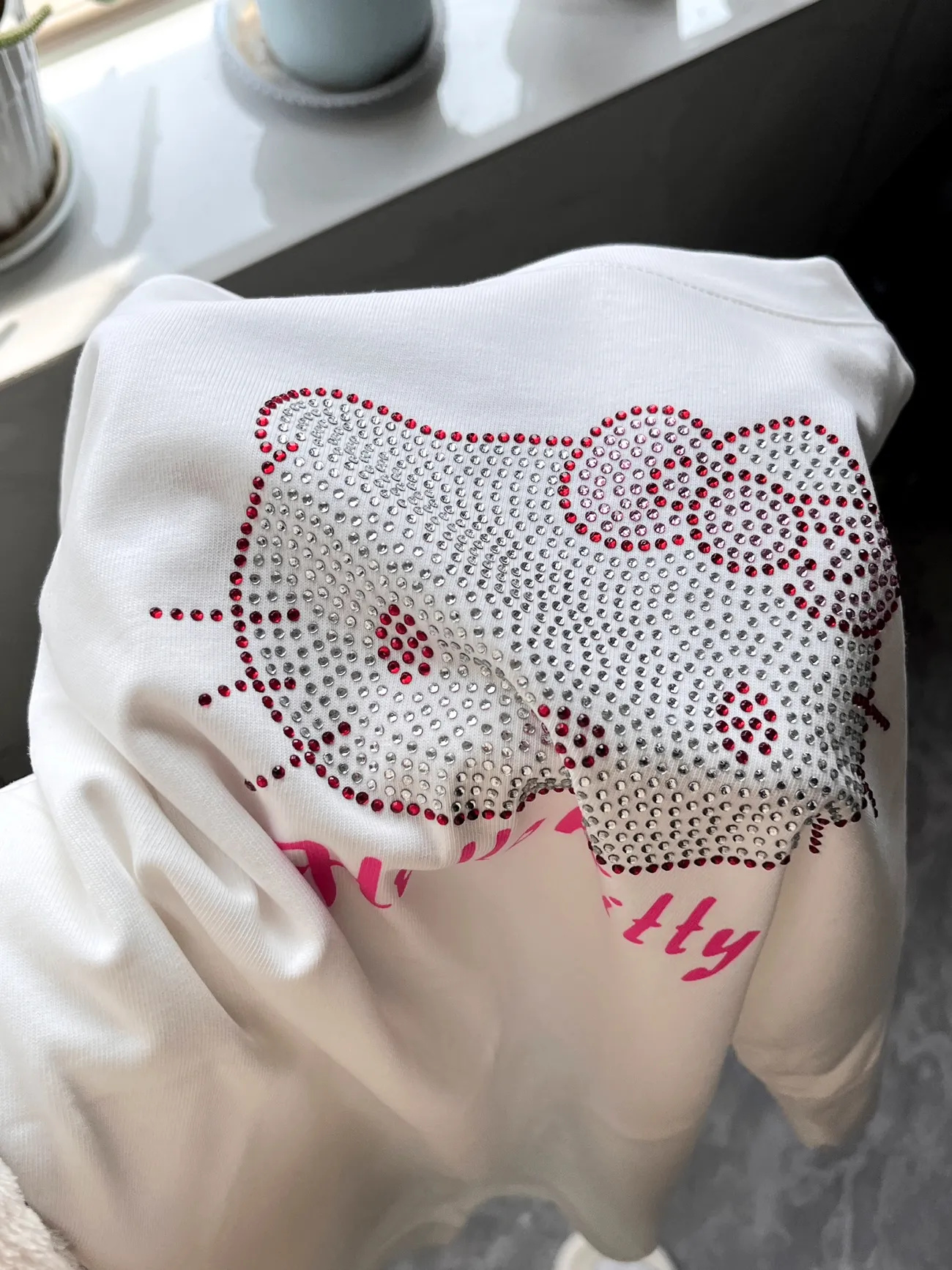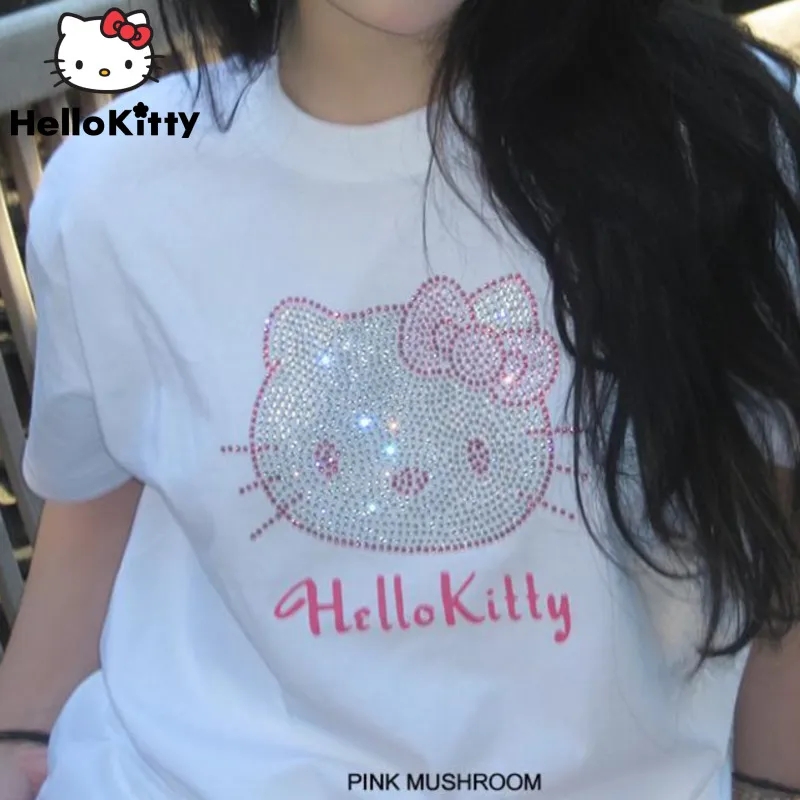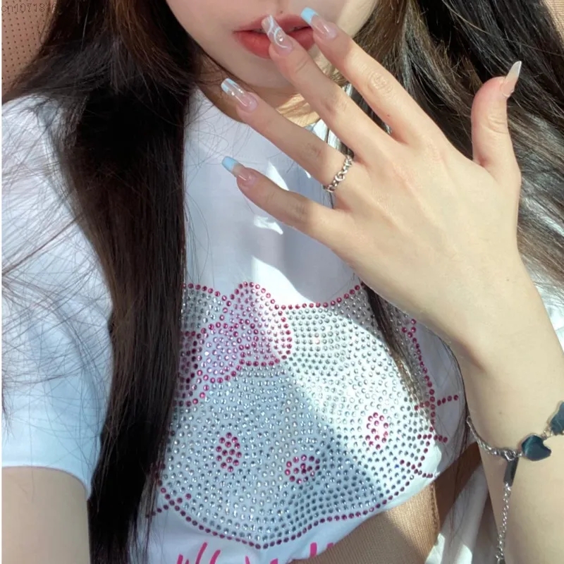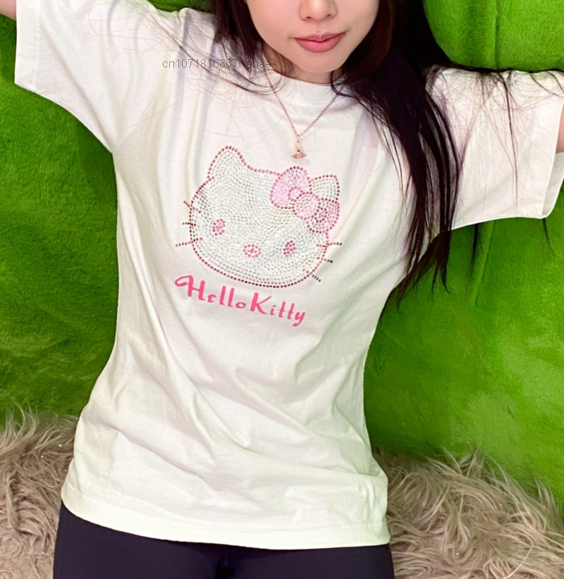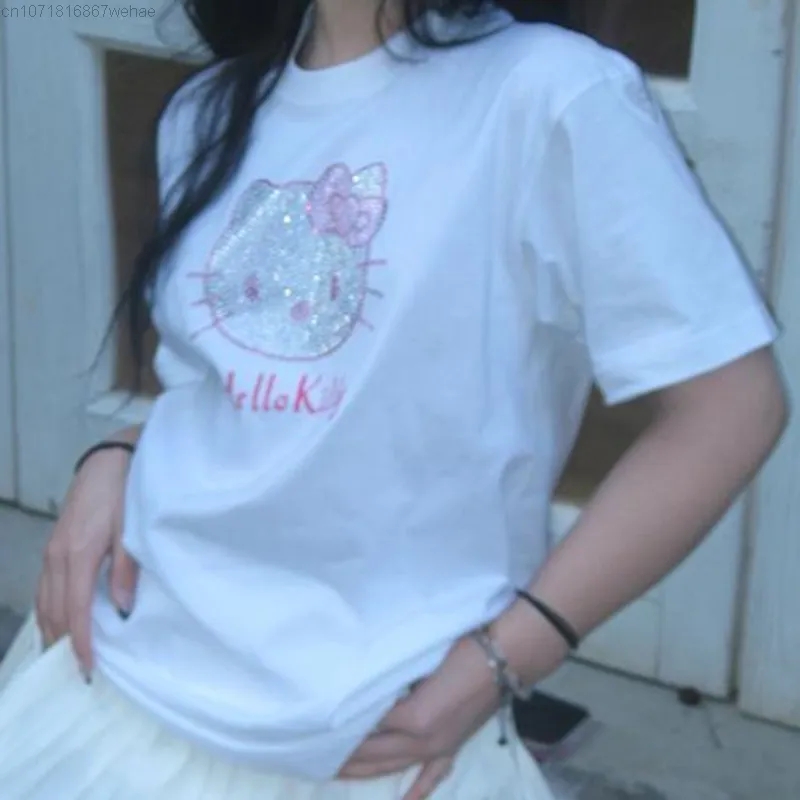 Kitty Cat Anime Rhinestone Short Sleeve T-shirt