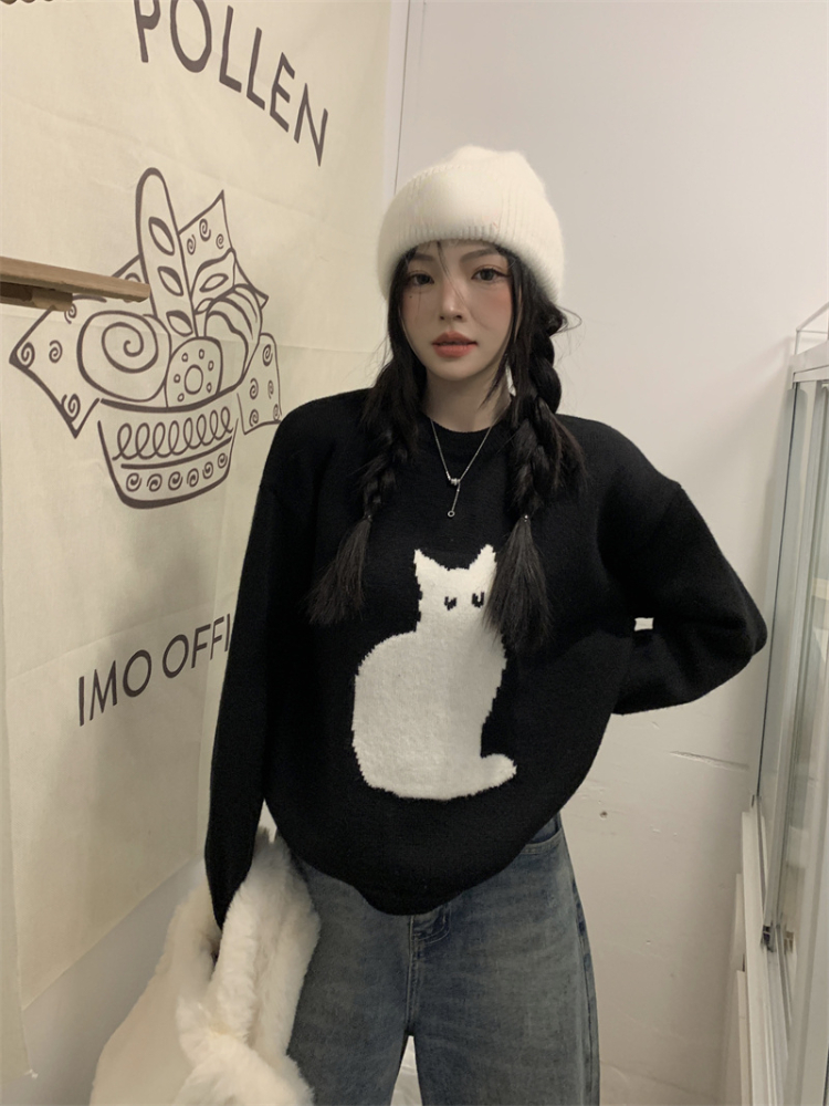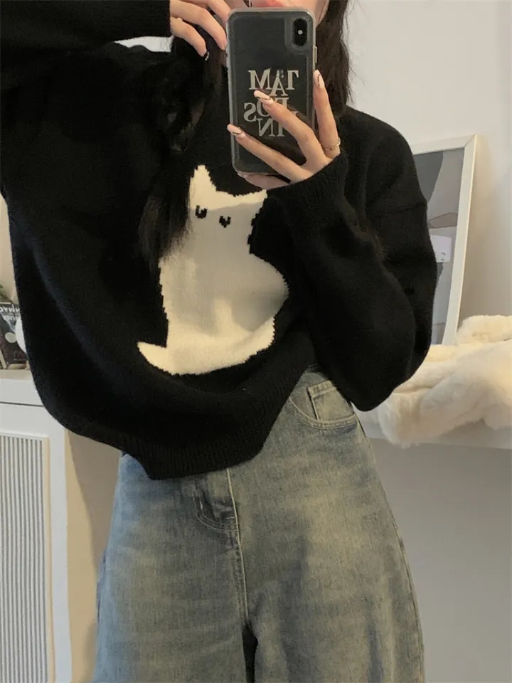 Cute Picture Frame Embroidery Velvet Thick Round Neck Sweatshirt Oversize Hoodie Pullover Sweater E-Girl Kawaii Korean Japanese Harajuku Streetwear