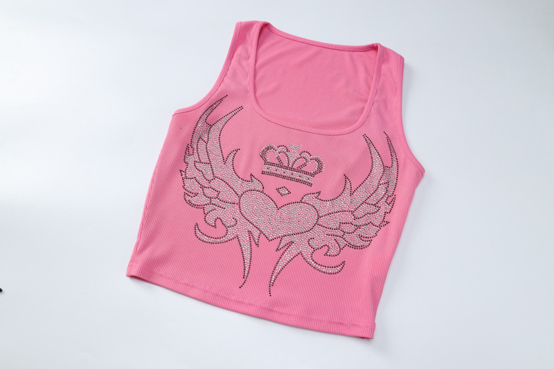 Pink Heart Rhinestone Tank Top