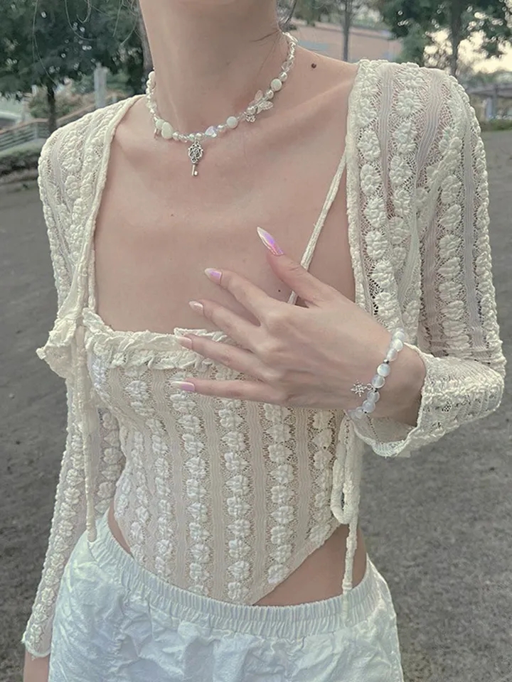 100% Brand New and High Quality . Material: Polyester, Cotton . Size: Available in images. Includes: Top + Cardigan.