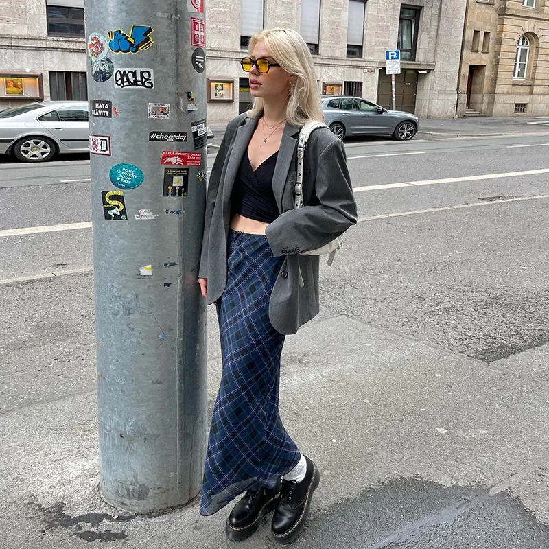 Blue Plaid Maxi Skirt