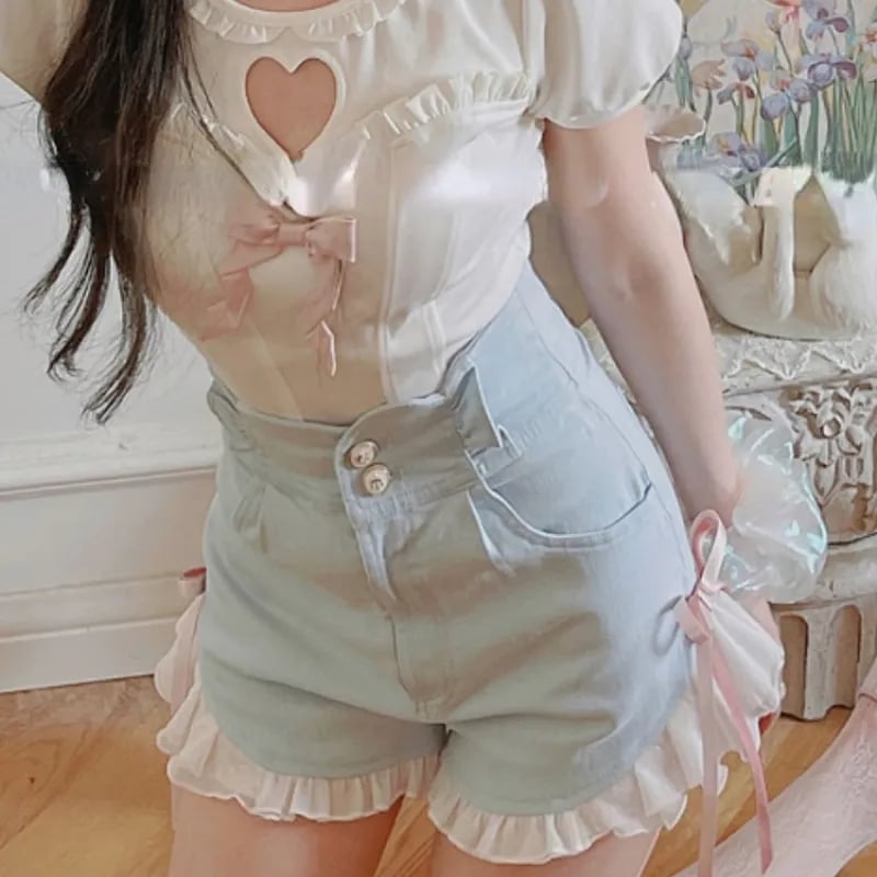 2PCS Sweet Pink Bow Sleeveless Lace Top + Skirt