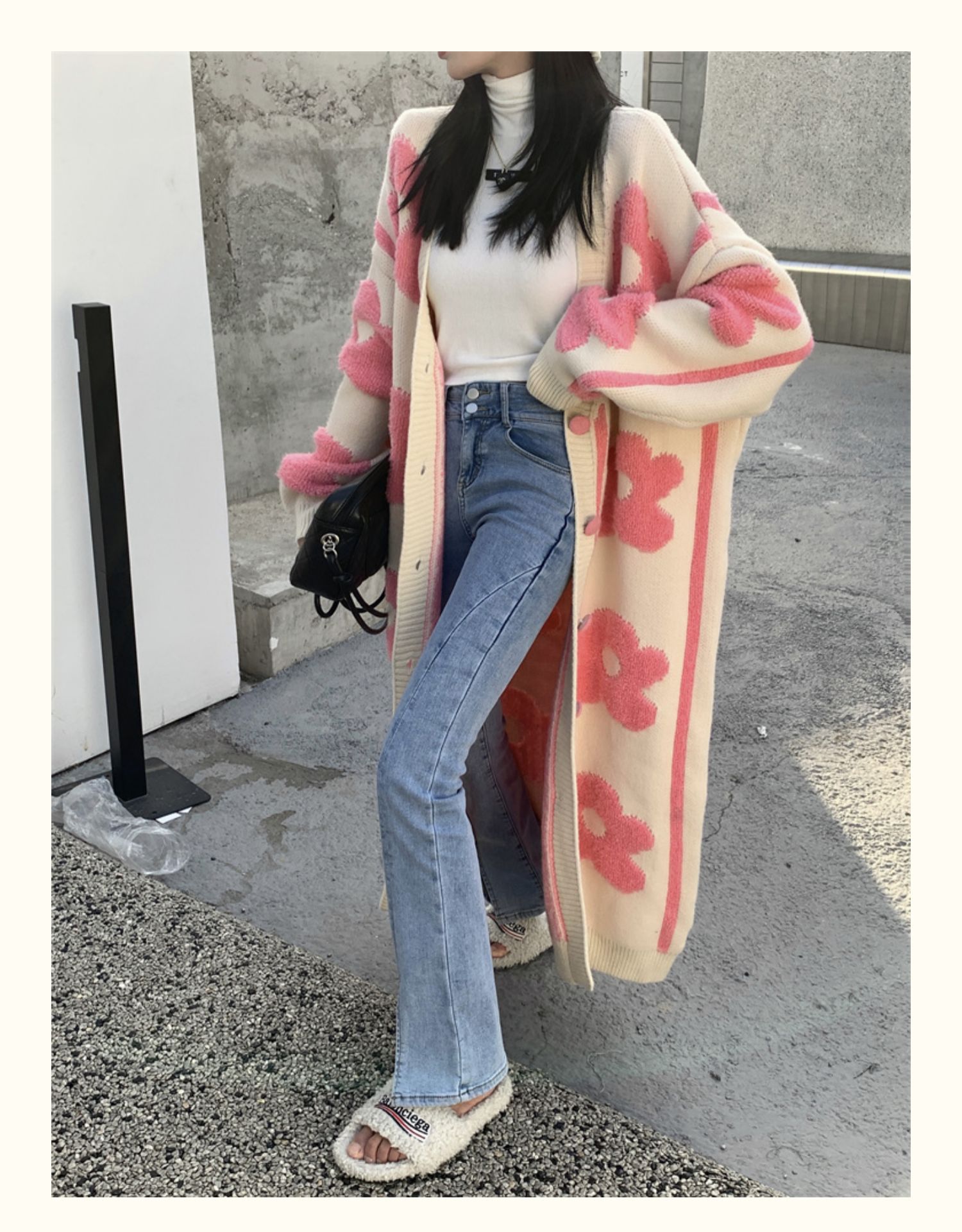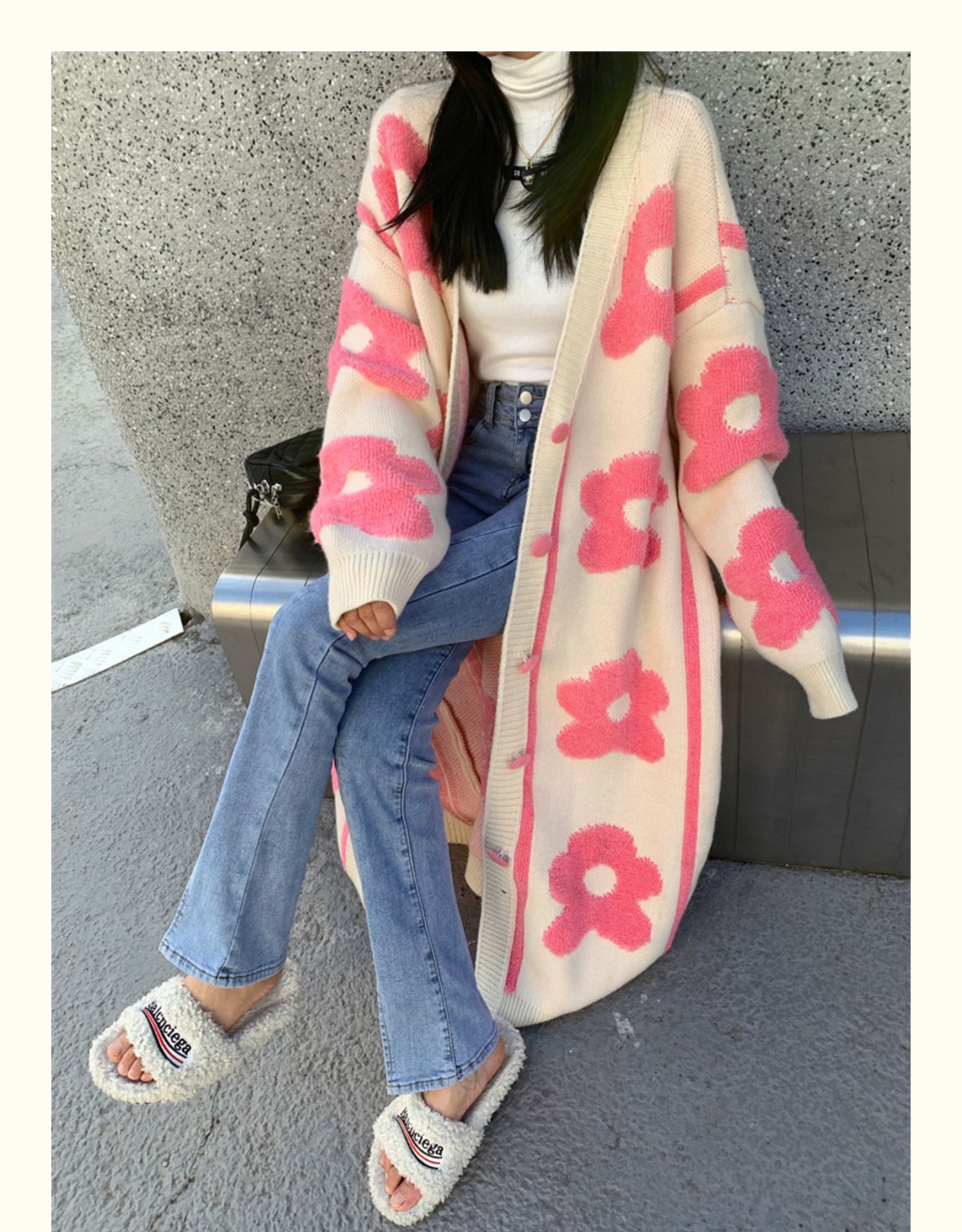 Pink Flower Oversized Knit Cardigan